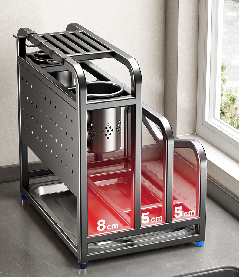 • 스테인리스 색상, 높이 및 폭 증가 [도마걸이 + 칼보호대 + 이중젓가락통]
