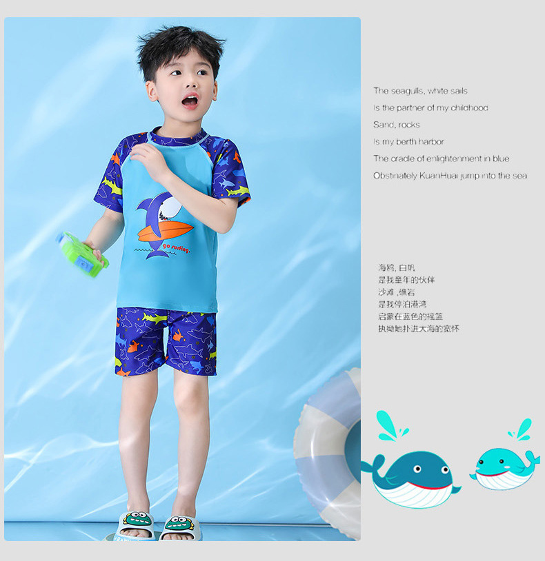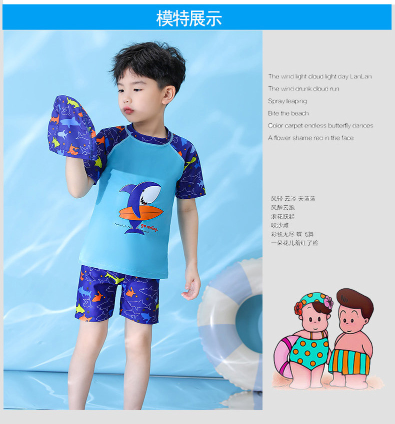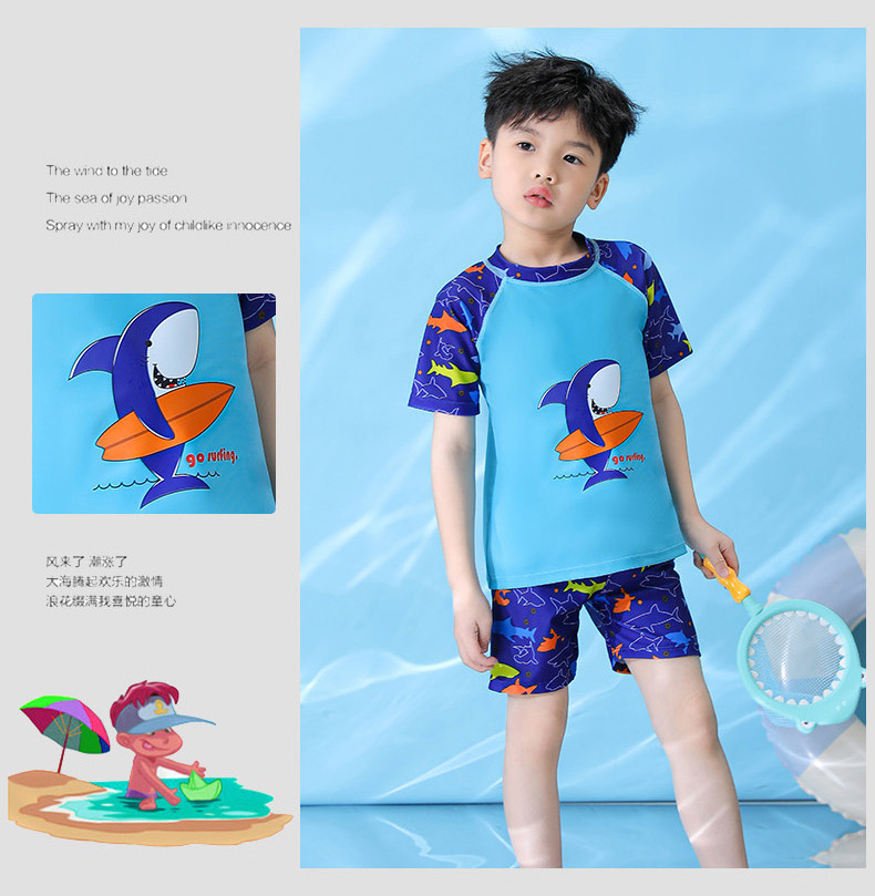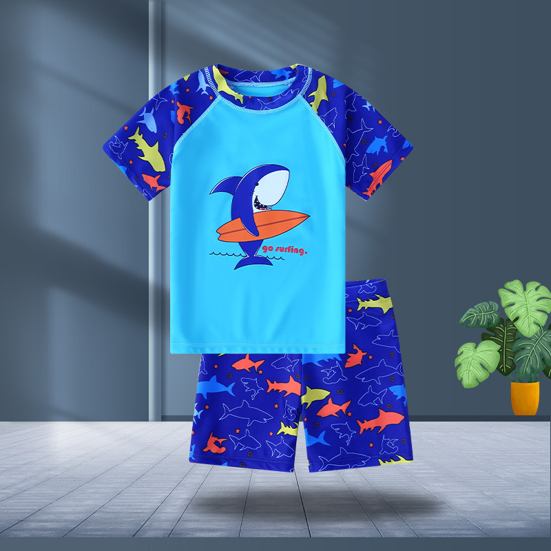 어린이 수영복 소년 수영복 아이 중 큰 아이 온천 수영복 세트 도매 짧은 소매 아기 만화 수영복스토어 가기