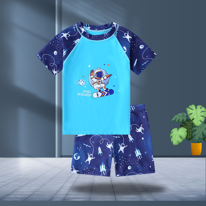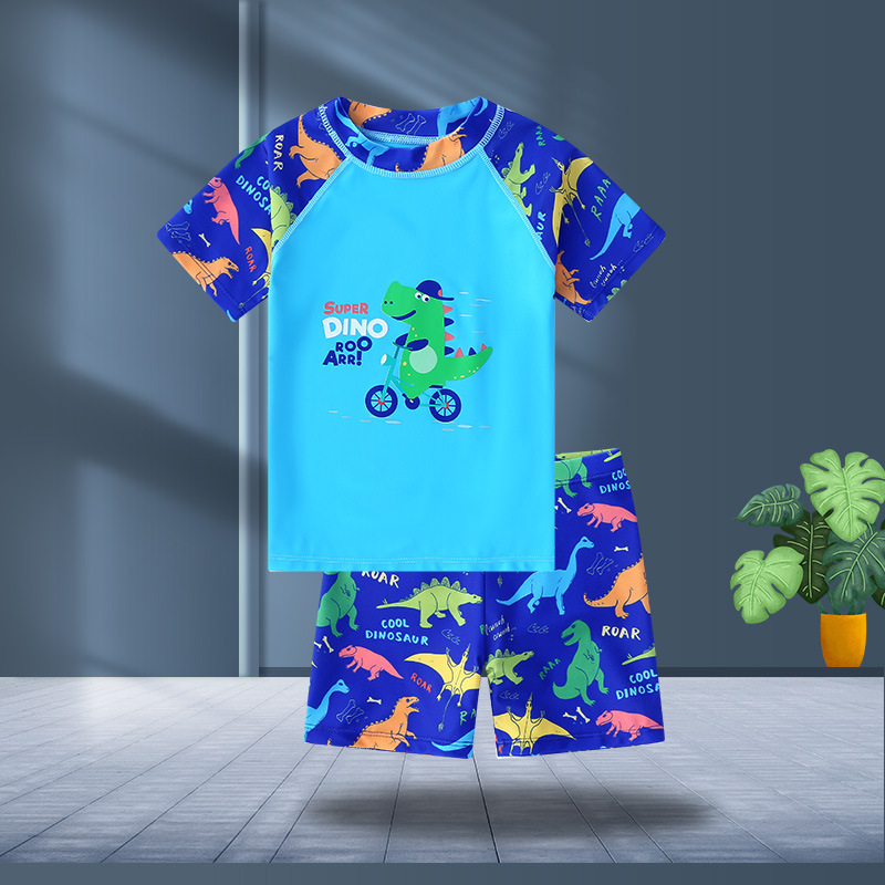 어린이 수영복 소년 수영복 아이 중 큰 아이 온천 수영복 세트 도매 짧은 소매 아기 만화 수영복