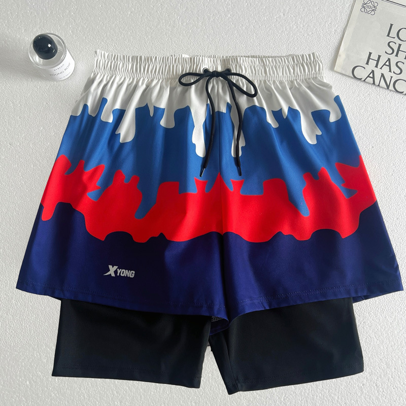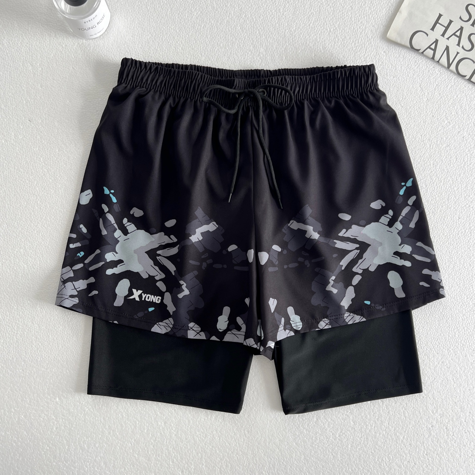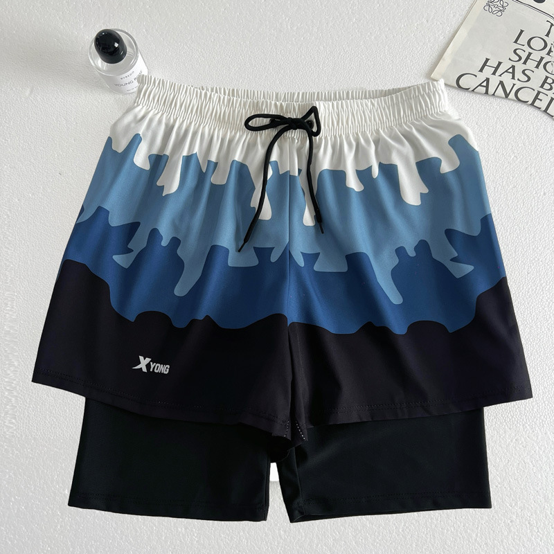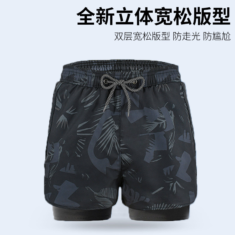남자 온천 수영 트렁크 비치 트렁크 수영 느슨한 더블 레이어 안티 당혹감 빠른 건조 서핑 성인 남성 수영 트렁크 배치