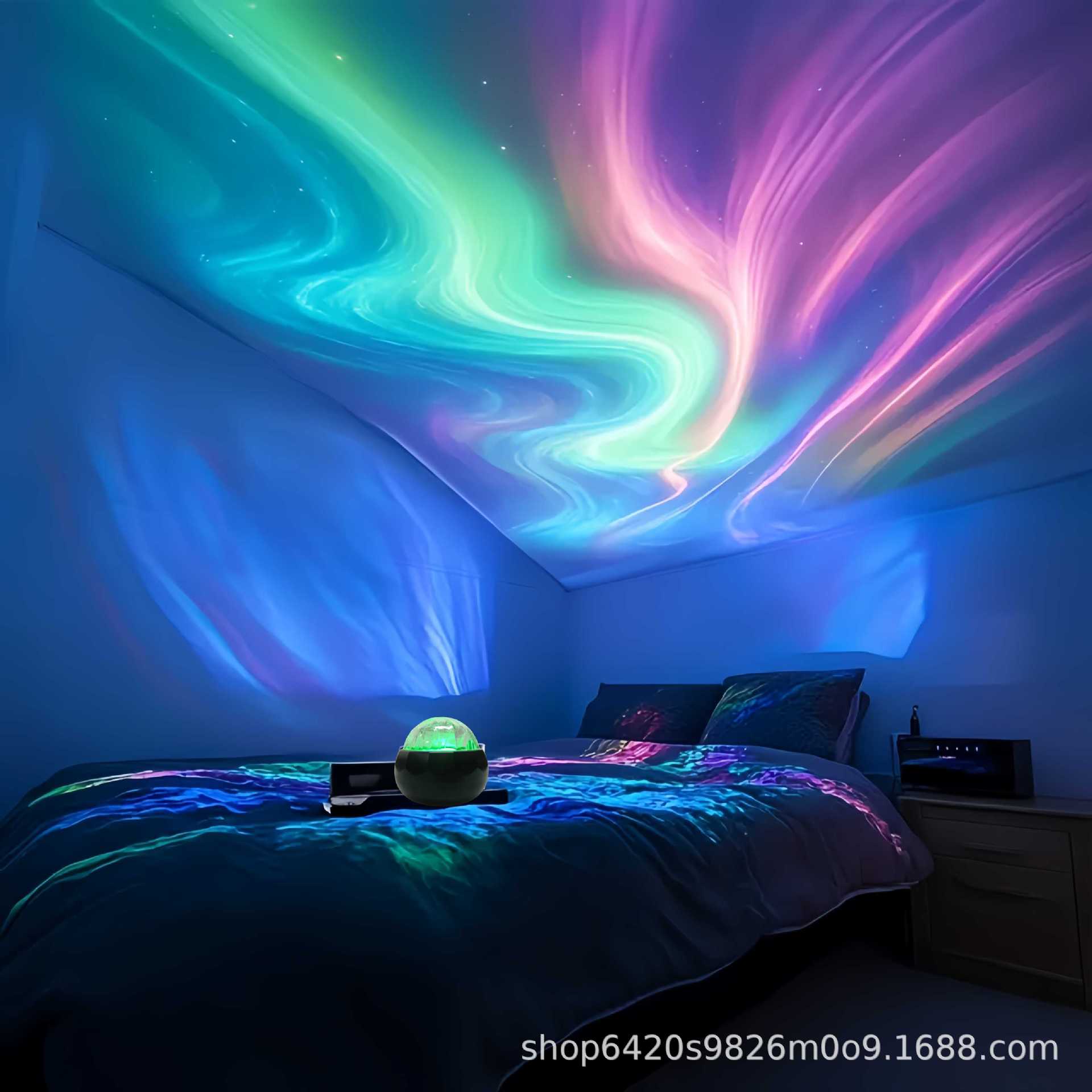 국경을 넘나드는 인기 호박 판타지 오로라 별이 빛나는 하늘 램프 동적 분위기 작은 마법 공 야간 조명(작은 호박)스토어 가기