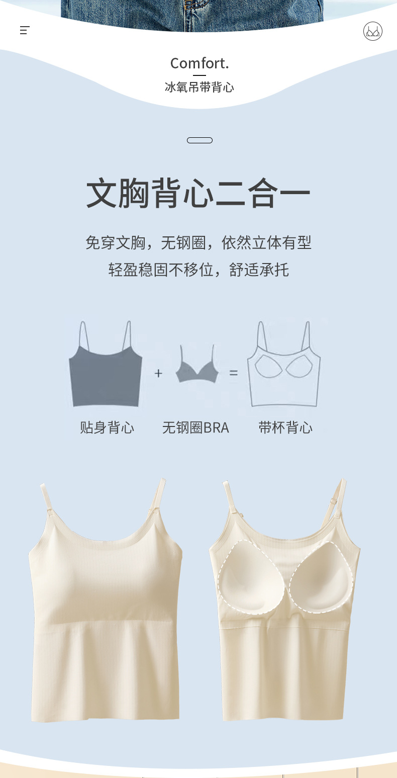 아이스 실크 심리스 캐미솔 여성용 가슴 패드 내장 대형 사이즈 100kg 올인원 브라탑 캐미솔 아우터웨어스토어 가기