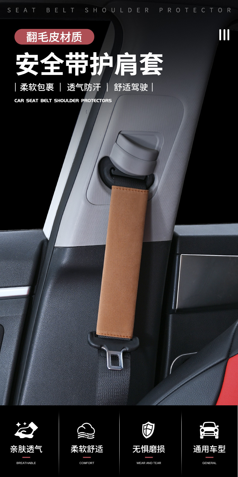 자동차 안전 벨트 어깨 패드 스웨이드 안전 벨트 보호 커버 사계절 보편적 인 내마모성 자동차 실내 장식 제품