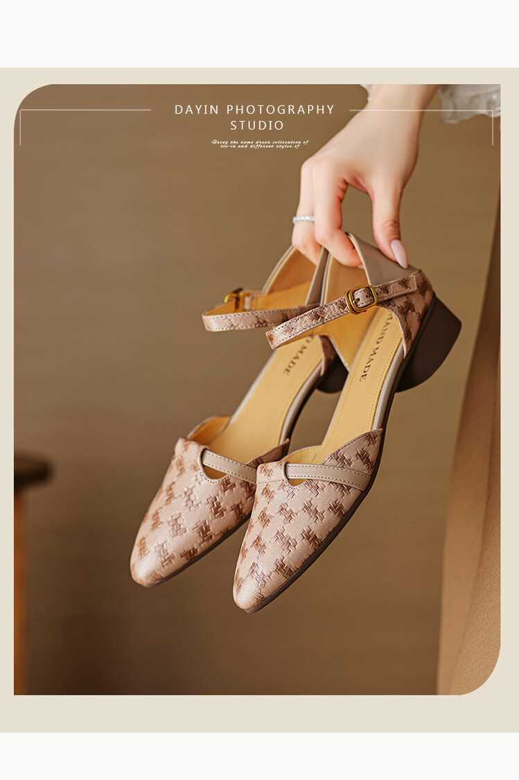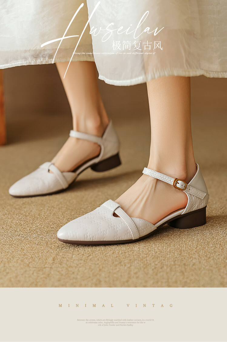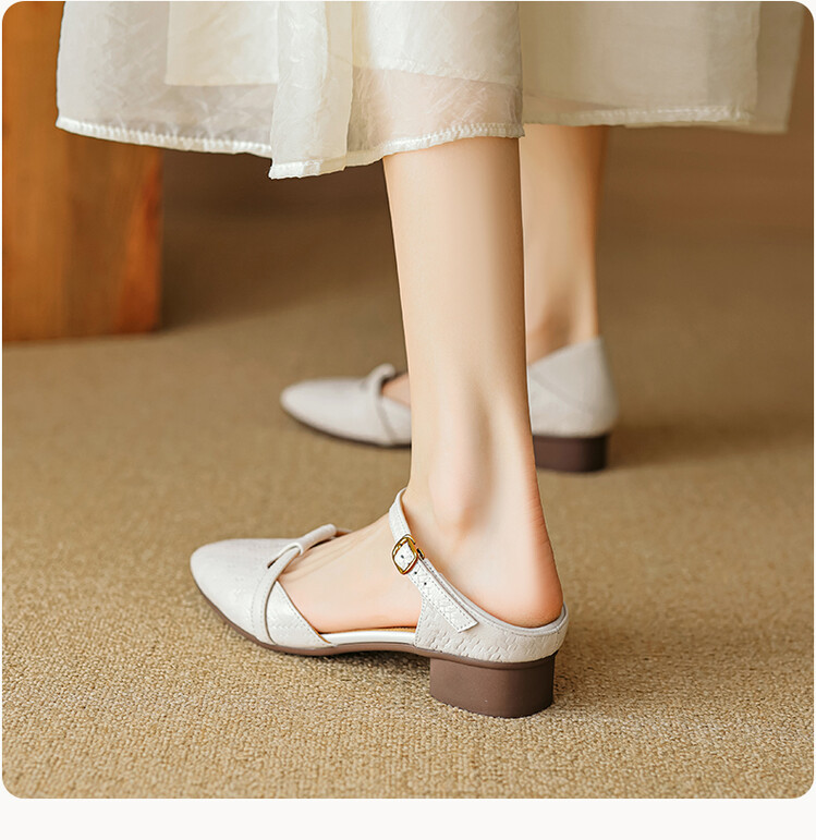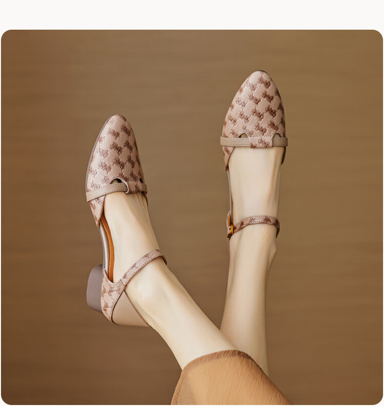 슈퍼 편안한 ~ 슈퍼 소프트 양가죽 ~ 프랑스 정품 가죽 발가락 샌들 2025 여름 새로운 두꺼운 힐 살구색 여성 신발스토어 가기
