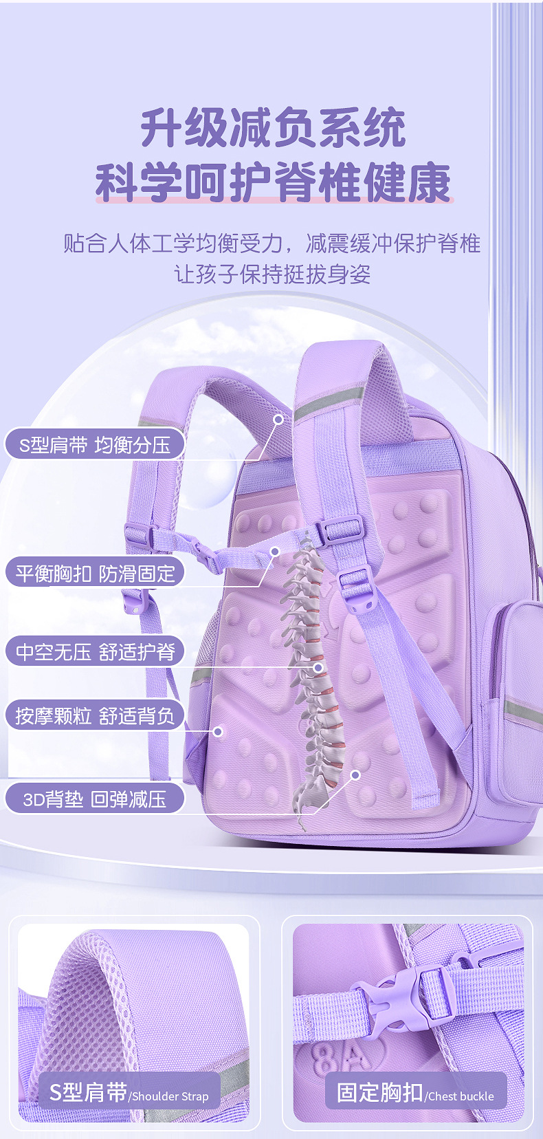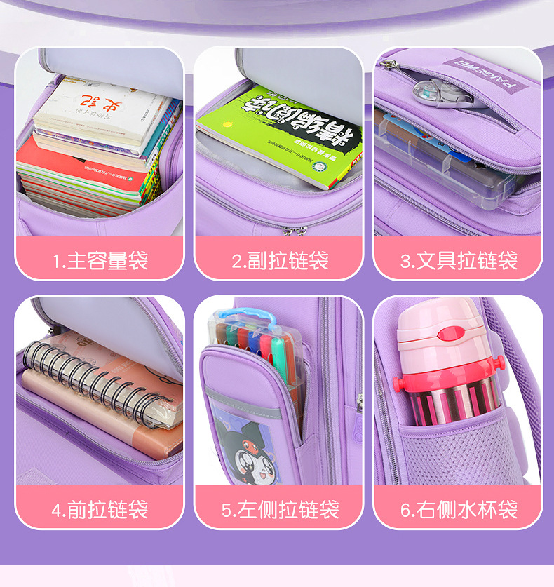 새로운 학교 가방 초등학교 여학생 대용량 1, 2, 3-6 학년 초경량 의자 소녀 초등학교 도매