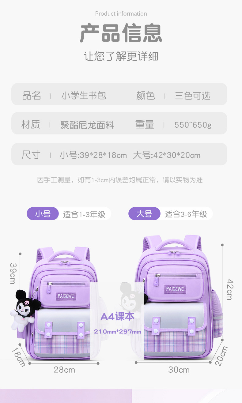 • 보라색 S 사이즈에는 참과 학용품 18개 세트가 함께 제공됩니다.