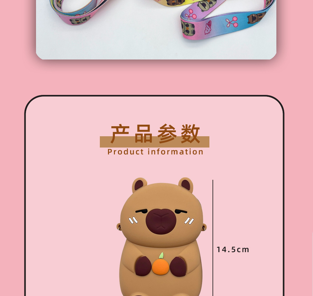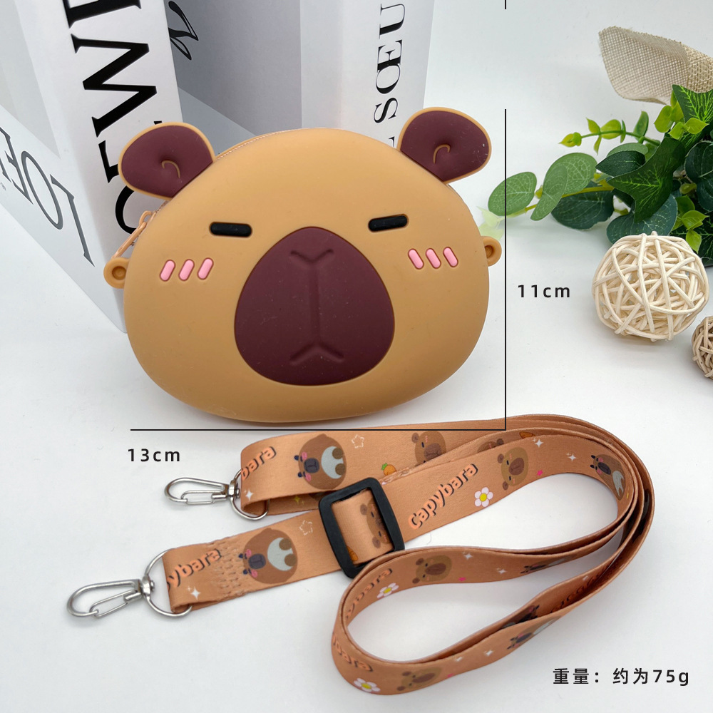 인터넷 연예인 카피바라 어린이 실리콘 동전 지갑 다용도 감압 소형 지갑 귀여운 카피바라 학생 크로스백