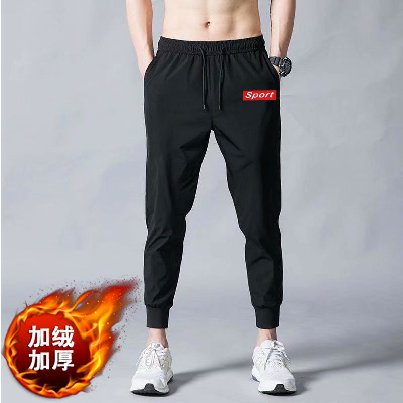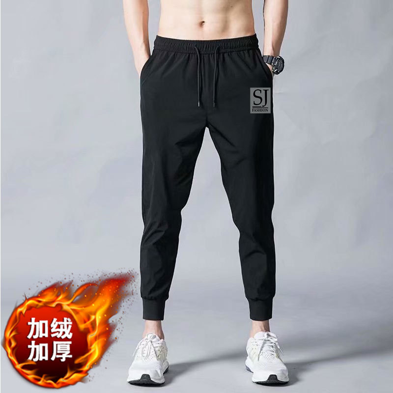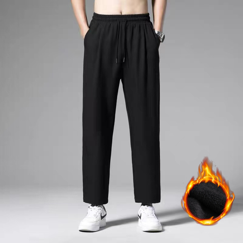 가을과 겨울 기모 두꺼운 작업 스포츠 바지 다리 다리 캐주얼 바지 남성용 느슨한 검은 탄성 작업 긴 바지스토어 가기