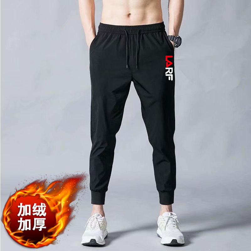 가을과 겨울 기모 두꺼운 작업 스포츠 바지 다리 다리 캐주얼 바지 남성용 느슨한 검은 탄성 작업 긴 바지