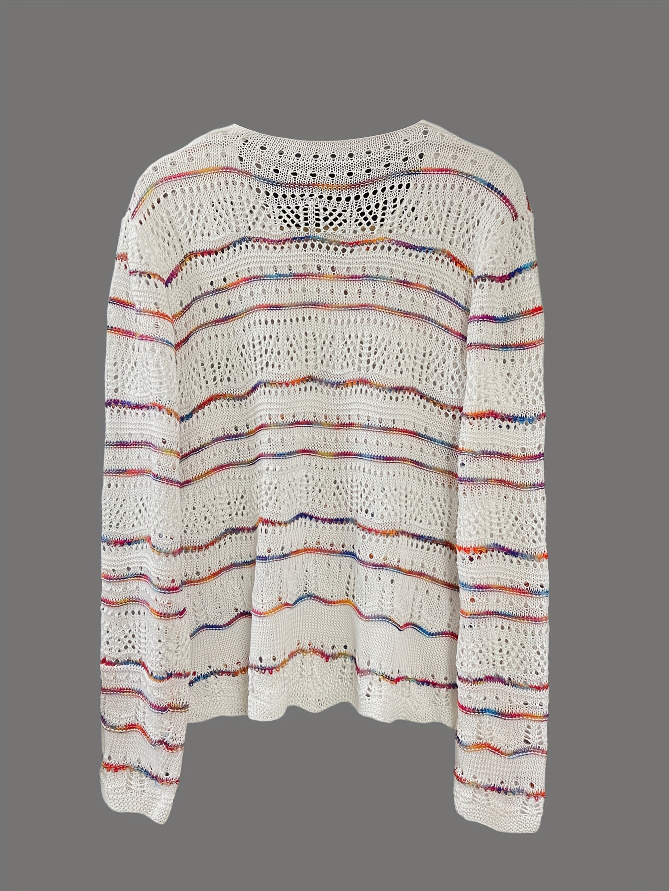 아마존 위시 2025 봄과 여름 줄무늬 스웨터 여성 유럽과 미국의 대외 무역 V-Neck 니트 스웨터 느슨한 캐주얼 스웨터