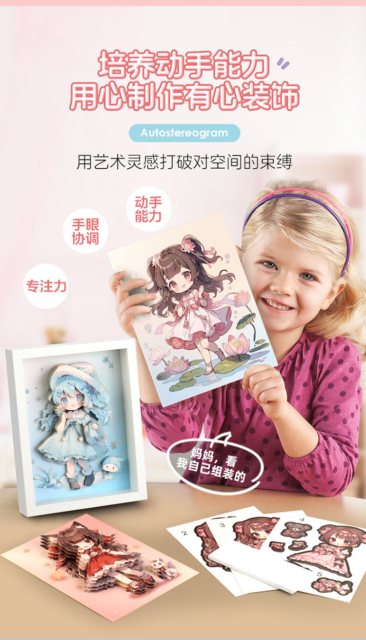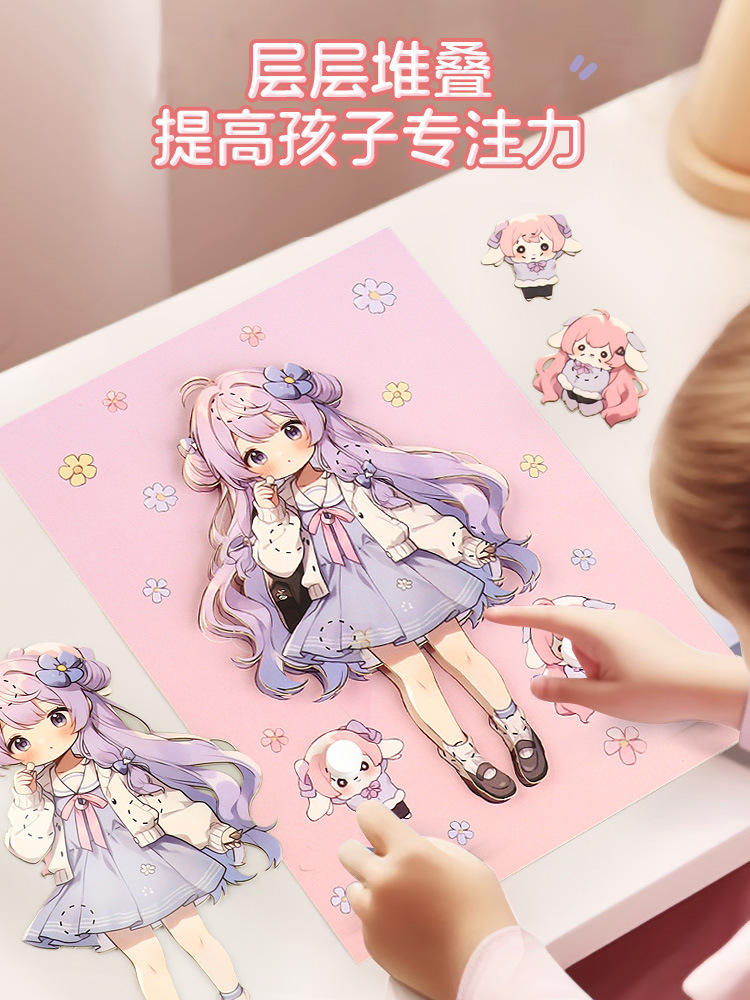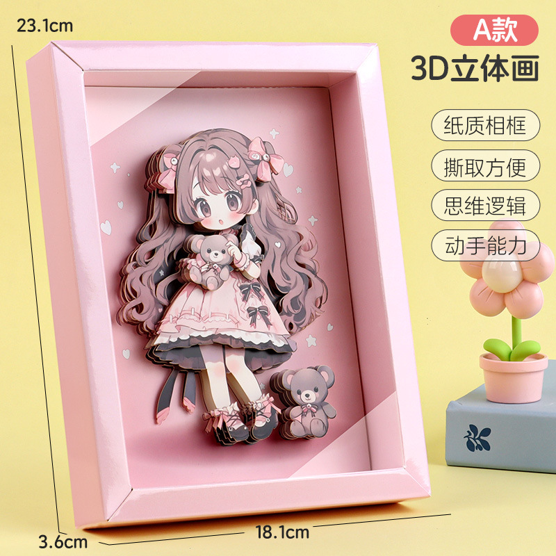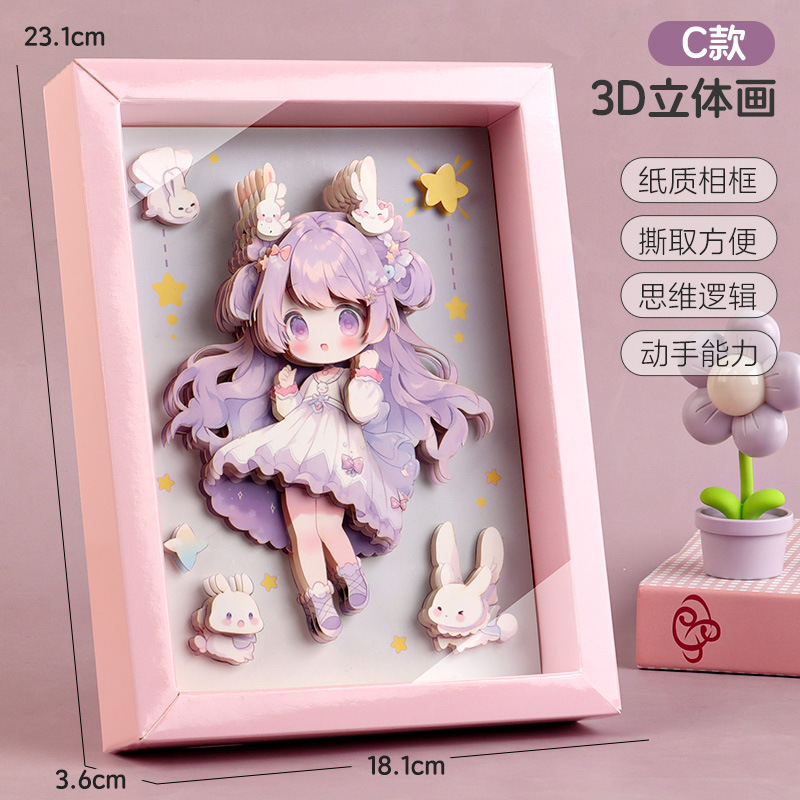 어린이 공주 창조적 인 3D 입체 그림 손 DIY 퍼즐 사진 프레임 소녀 교육 장난감 선물 데스크탑 장식품스토어 가기