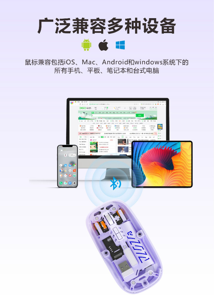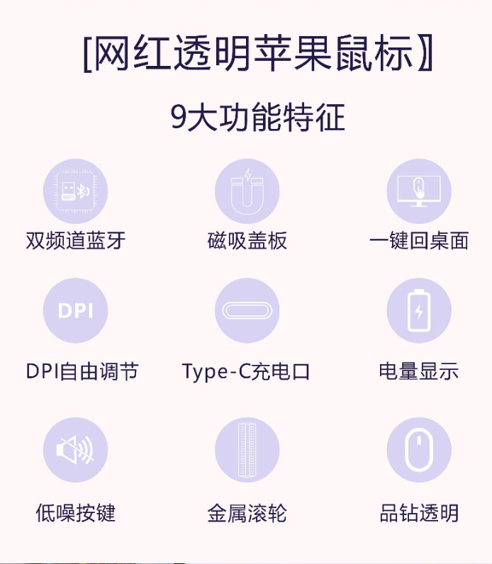 국경 간 새로운 투명 블루투스 마우스 iPad 화웨이 샤오미 태블릿 듀얼 모드 무선 게임 마우스스토어 가기