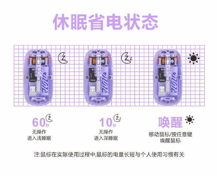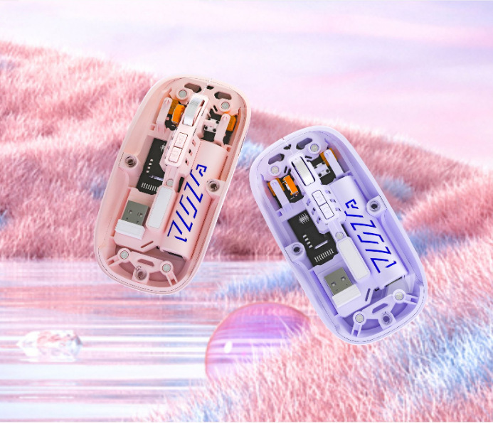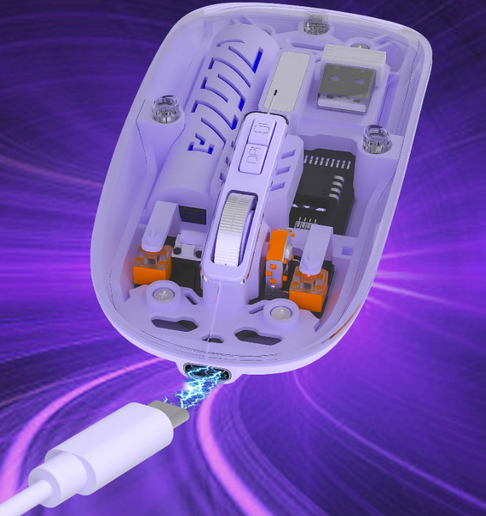• 투명 마우스 듀얼 모드 보라색 [배터리 표시]