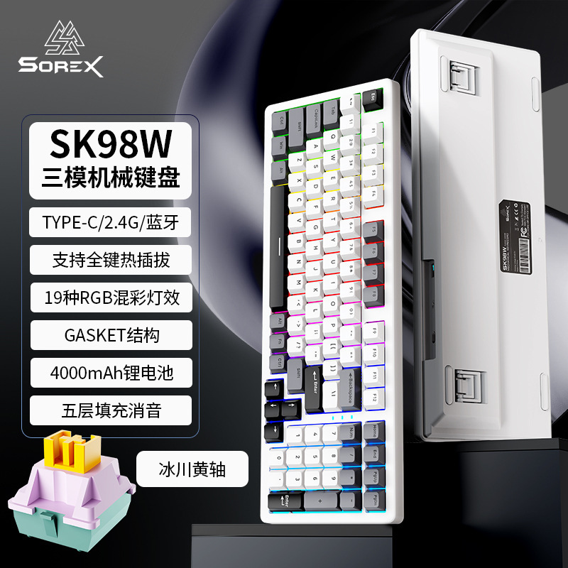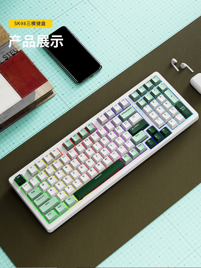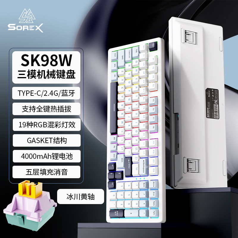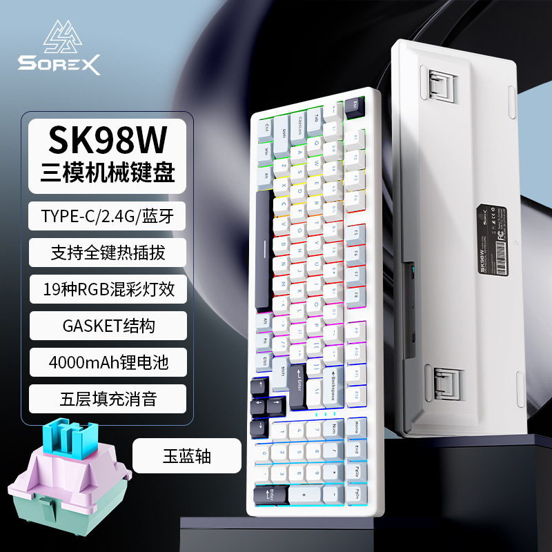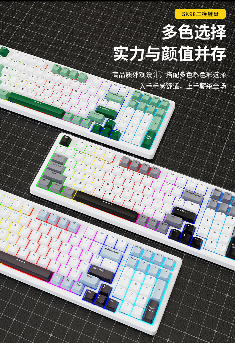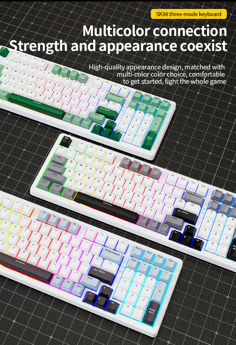 국경 간 도매 SK98W 맞춤형 기계식 키보드 GASKET 구조 2.4G 3모드 RGB e스포츠 등급 RGB스토어 가기
