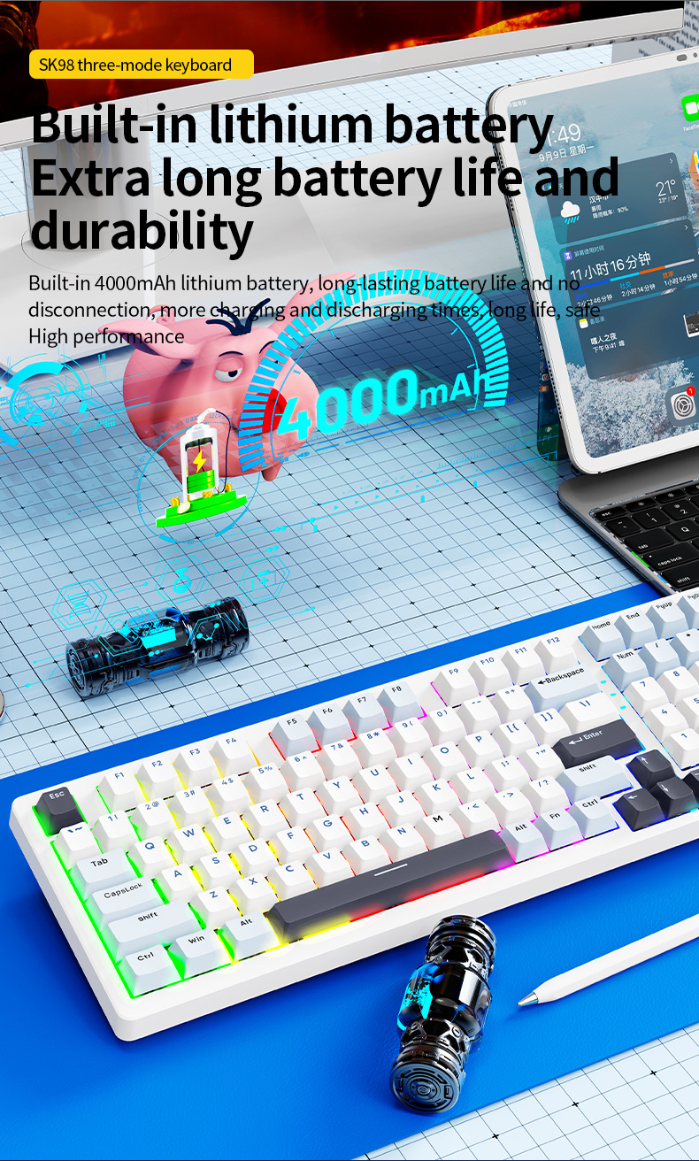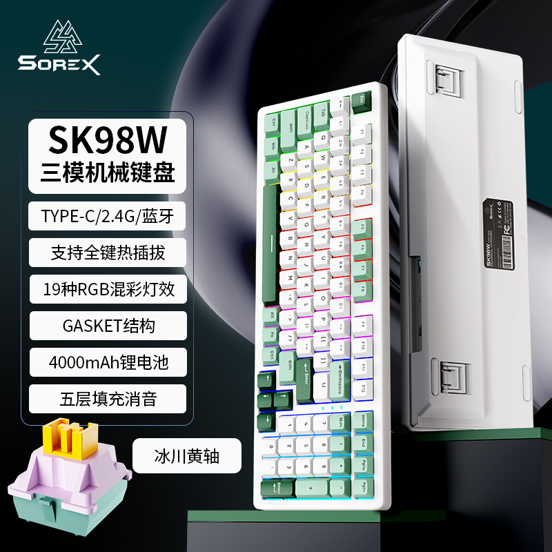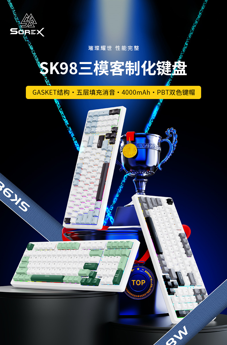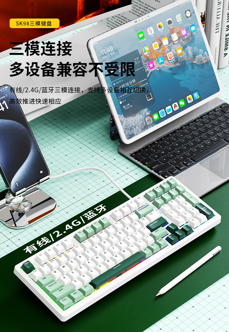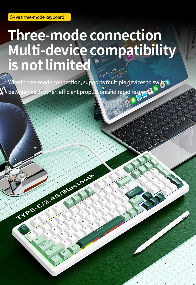 국경 간 도매 SK98W 맞춤형 기계식 키보드 GASKET 구조 2.4G 3모드 RGB e스포츠 등급 RGB스토어 가기