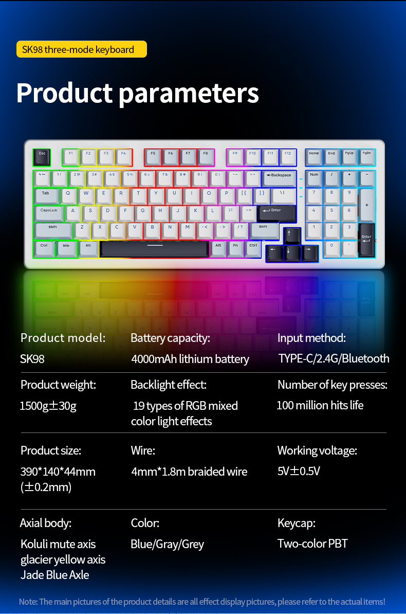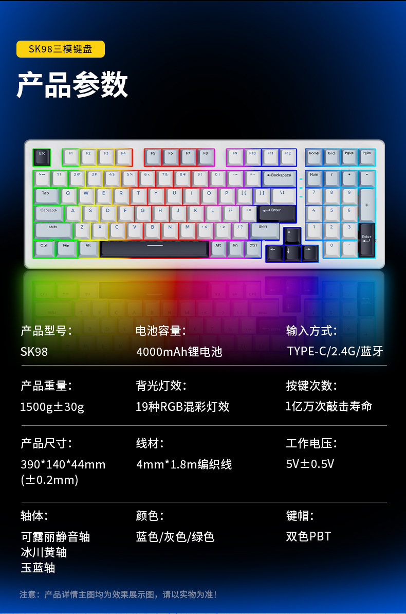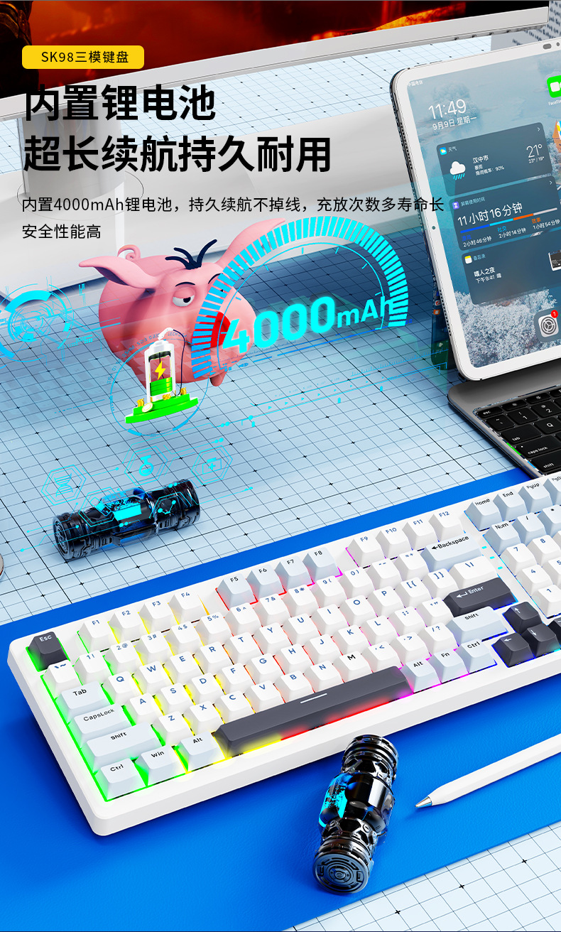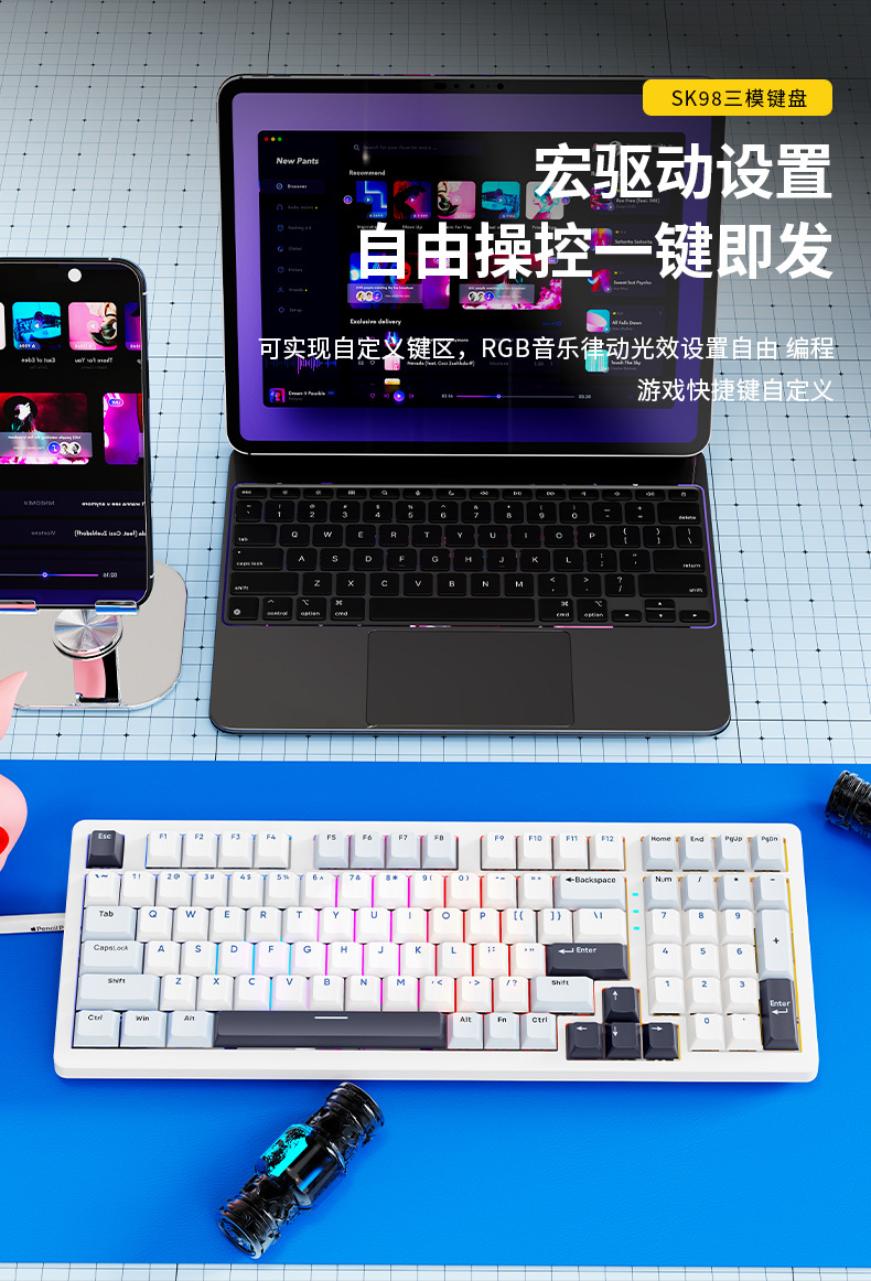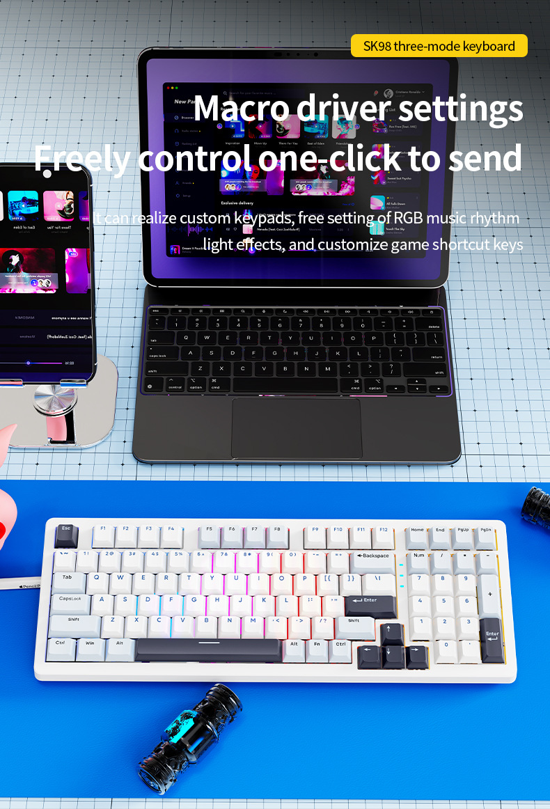 국경 간 도매 SK98W 맞춤형 기계식 키보드 GASKET 구조 2.4G 3모드 RGB e스포츠 등급 RGB스토어 가기