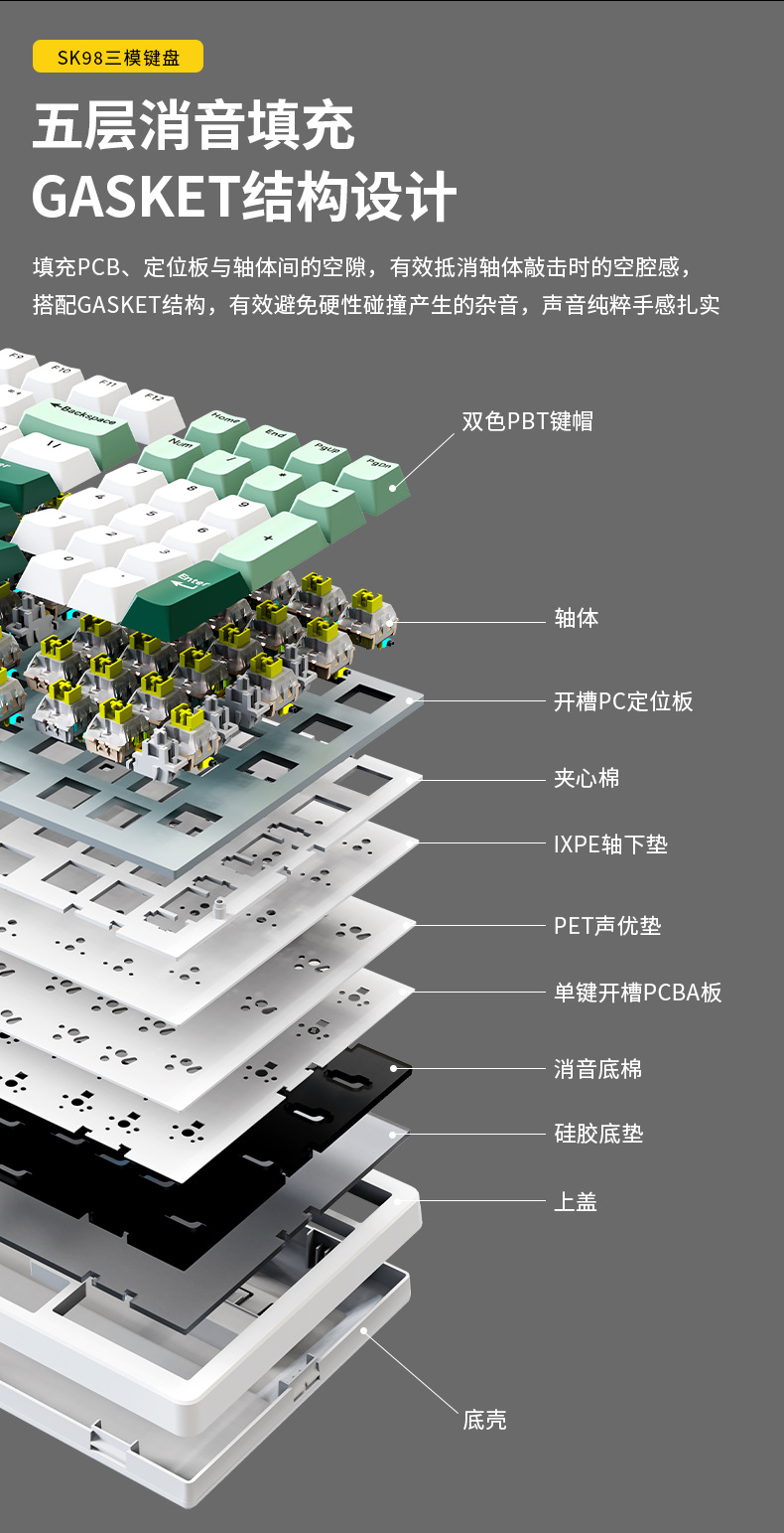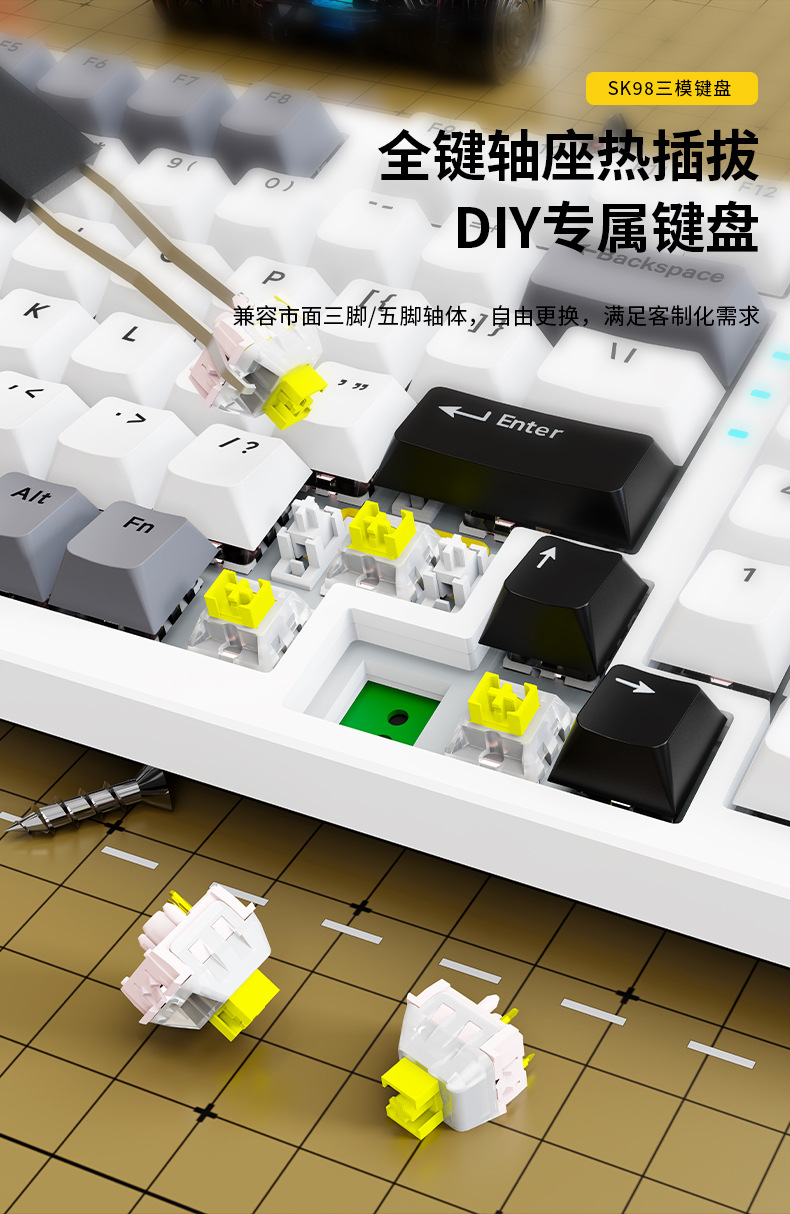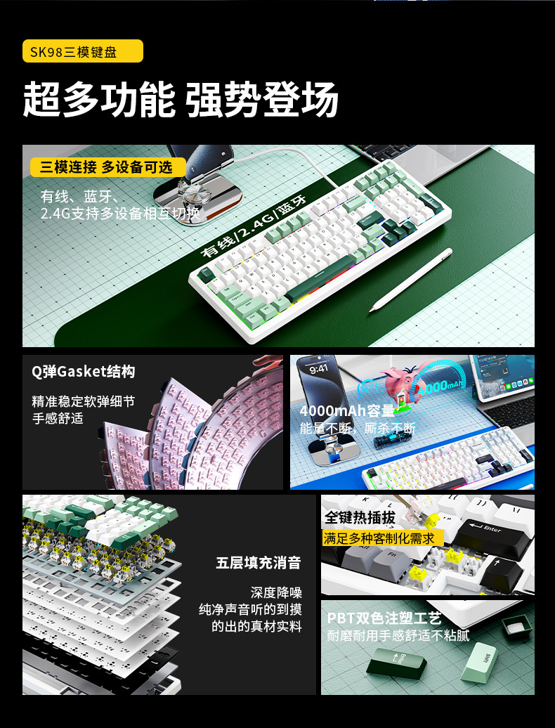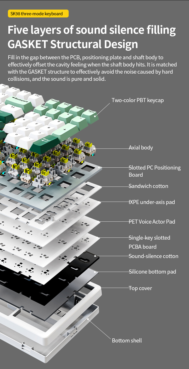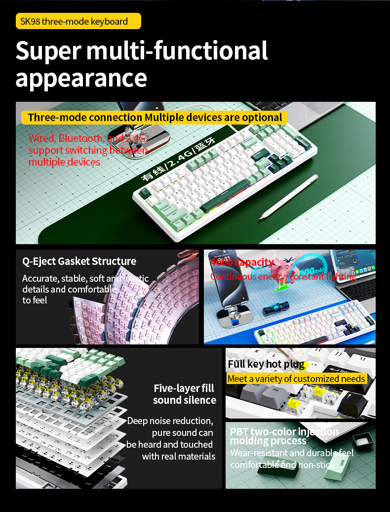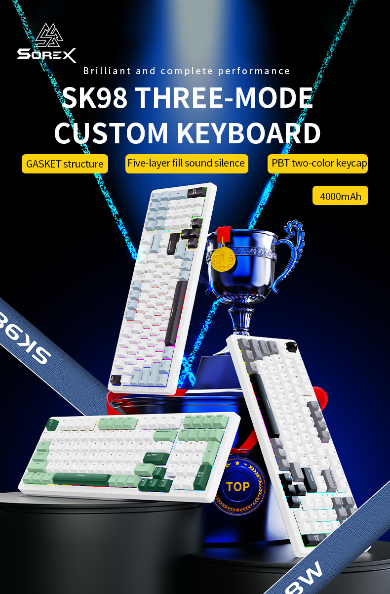 국경 간 도매 SK98W 맞춤형 기계식 키보드 GASKET 구조 2.4G 3모드 RGB e스포츠 등급 RGB