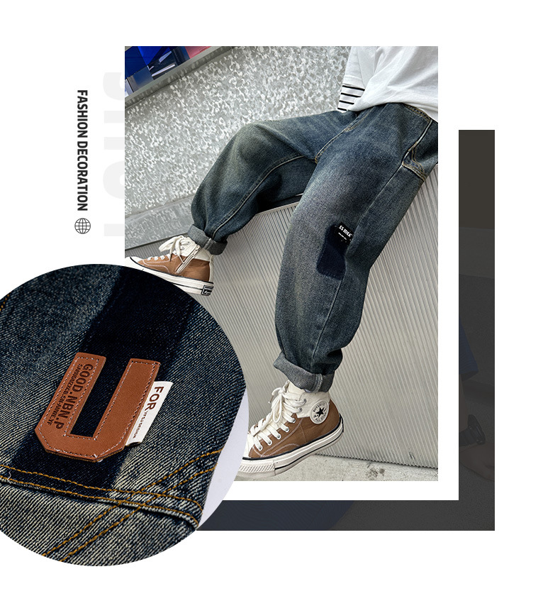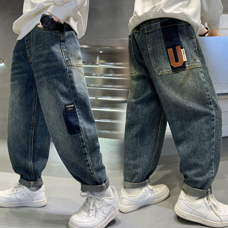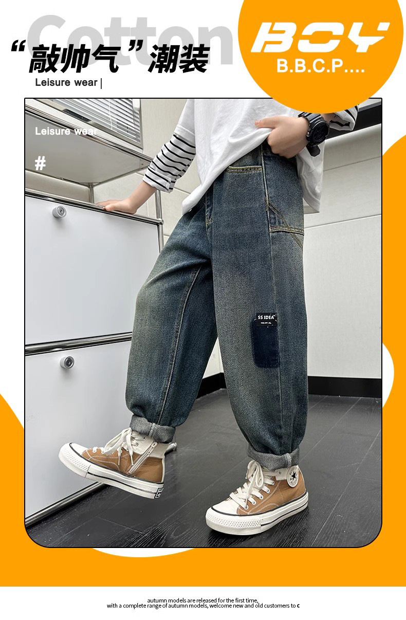 소년 봄 바지 봄 가을 청바지 2025 새로운 어린이 바지 소년 거리 바지 느슨한 한국 스타일스토어 가기