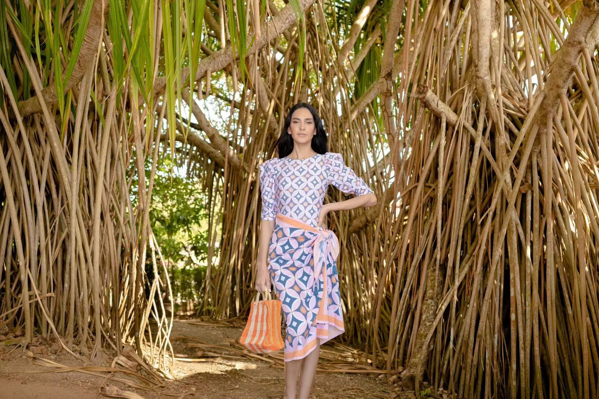 2026 크로스보더 아마존 여성용 원피스 수영복 휴가용 프린트 긴팔 비키니 자외선 차단 레트로 비치 드레스 세트스토어 가기