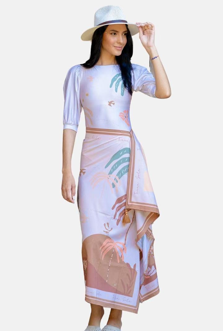 2026 크로스보더 아마존 여성용 원피스 수영복 휴가용 프린트 긴팔 비키니 자외선 차단 레트로 비치 드레스 세트