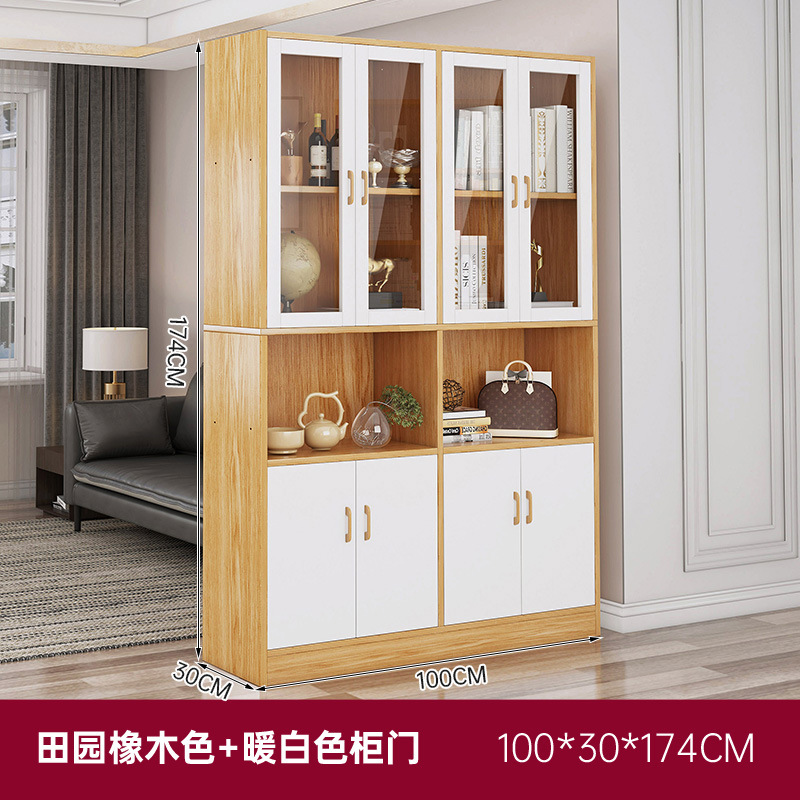 • [캐비닛 도어 스타일] 전원 참나무 색상 + 따뜻한 흰색 100*30*174cm + 조립 + 프레임 구조