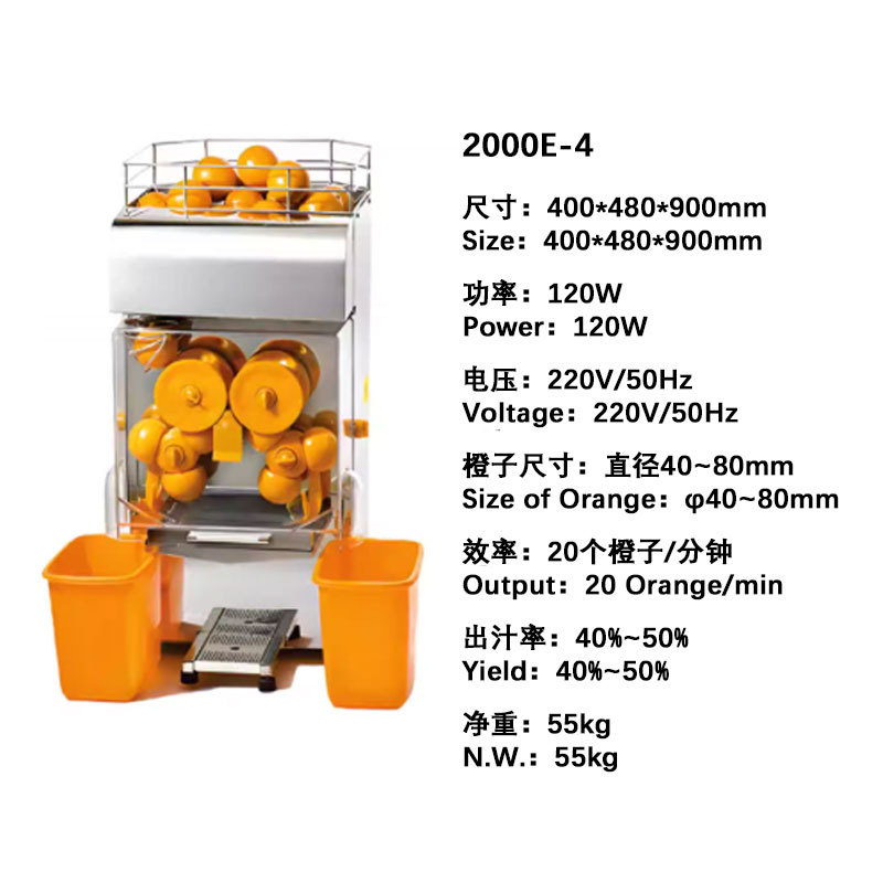 상업용 스테인레스 스틸 완전 자동 오렌지 찌꺼기 주스 분리 신선한 오렌지 주스 기계 전기 과일 압착기