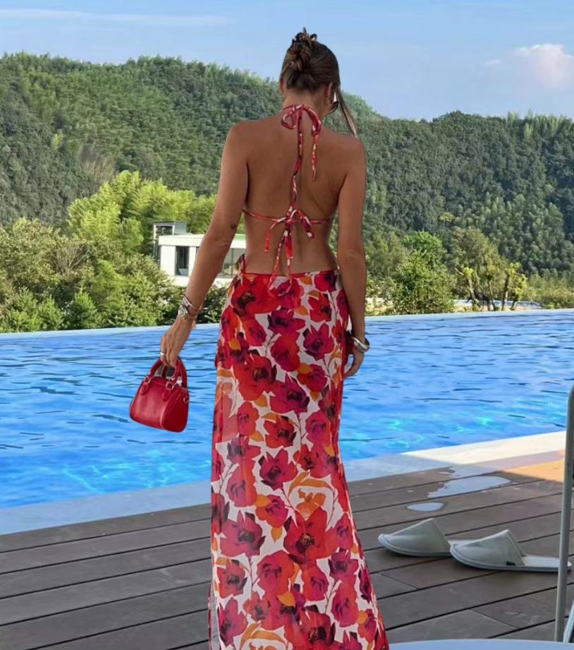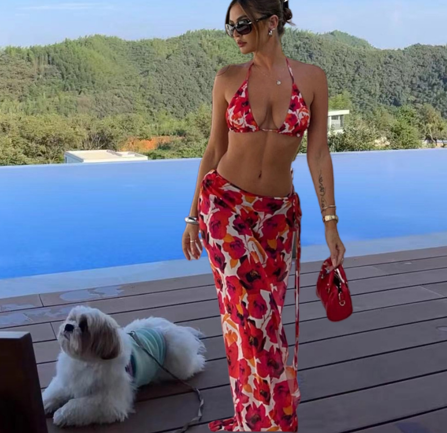 2022WISH AliExpress 아마존 인쇄 섹시한 비키니 스트랩 스커트 캐주얼 세트 INS스토어 가기