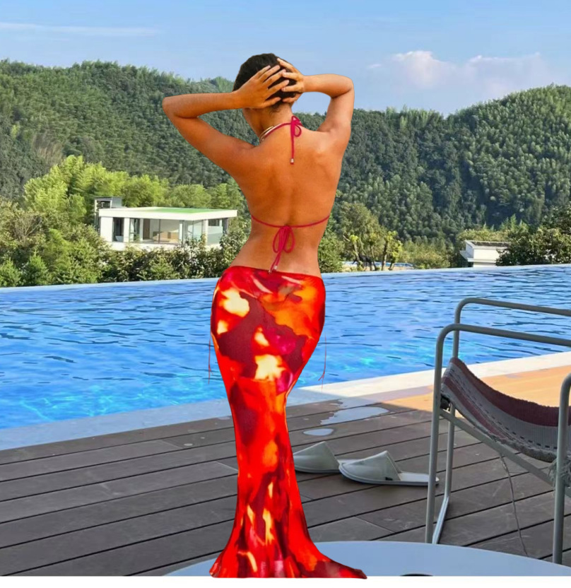 2022WISH AliExpress 아마존 인쇄 섹시한 비키니 스트랩 스커트 캐주얼 세트 INS
