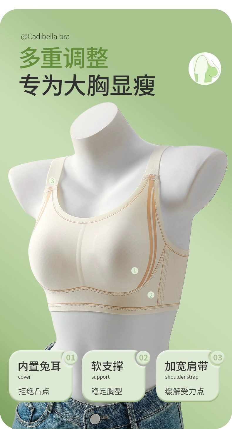 울트라 얇은 토끼 귀 속옷 여성의 큰 가슴은 작은 풀 컵 편안한 추적없는 당김 방지 처짐 붕괴 브라스토어 가기