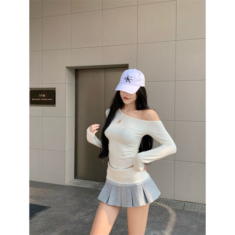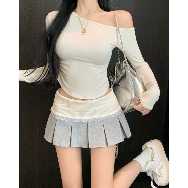줄이없는 주름 치마 새 2025 여름 달콤한 매운 레이스 가장자리 대비 컬러 스티칭 높은 허리 A-라인 섹시한 짧은 치마스토어 가기