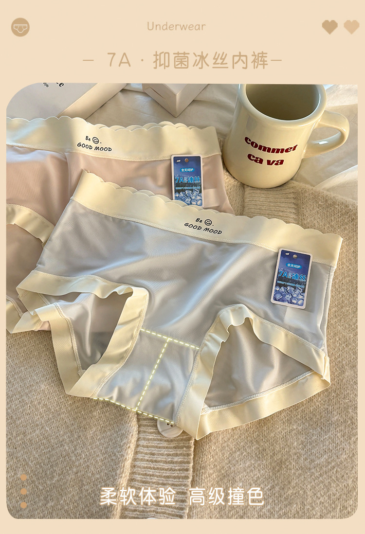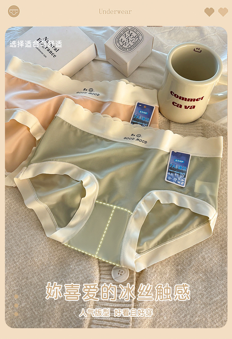 7A 아이스 실크 원활한 초박형 달콤한 연화 속옷 소녀 생 뽕나무 실크 바닥 파일은 엉덩이 통기성 브리프를 클립하지 않습니다.스토어 가기
