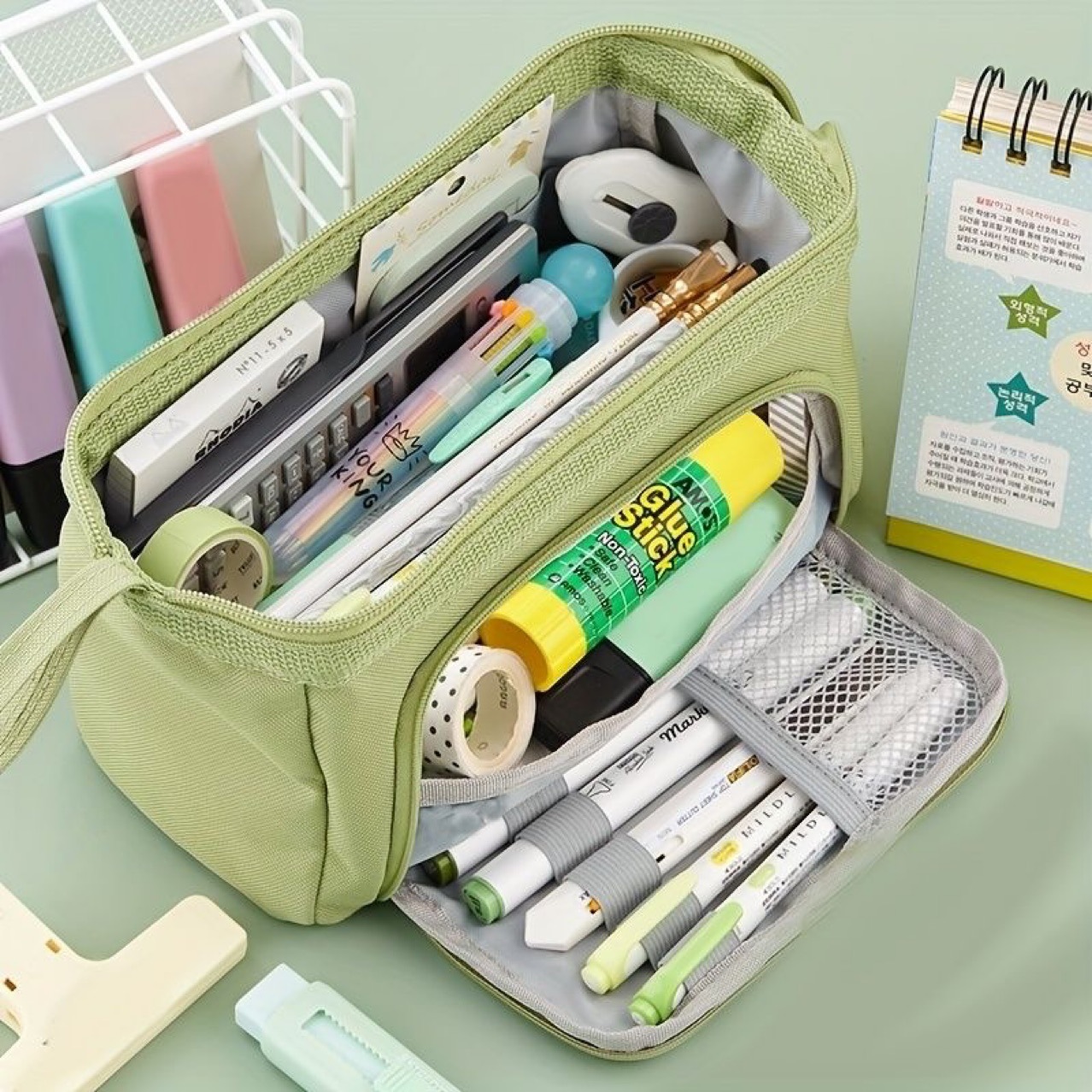 한국식 보트 모양의 초대형 용량 다층 옥스포드 연필 케이스 다기능 휴대용 문구 케이스 간단한 학생 저장 연필스토어 가기