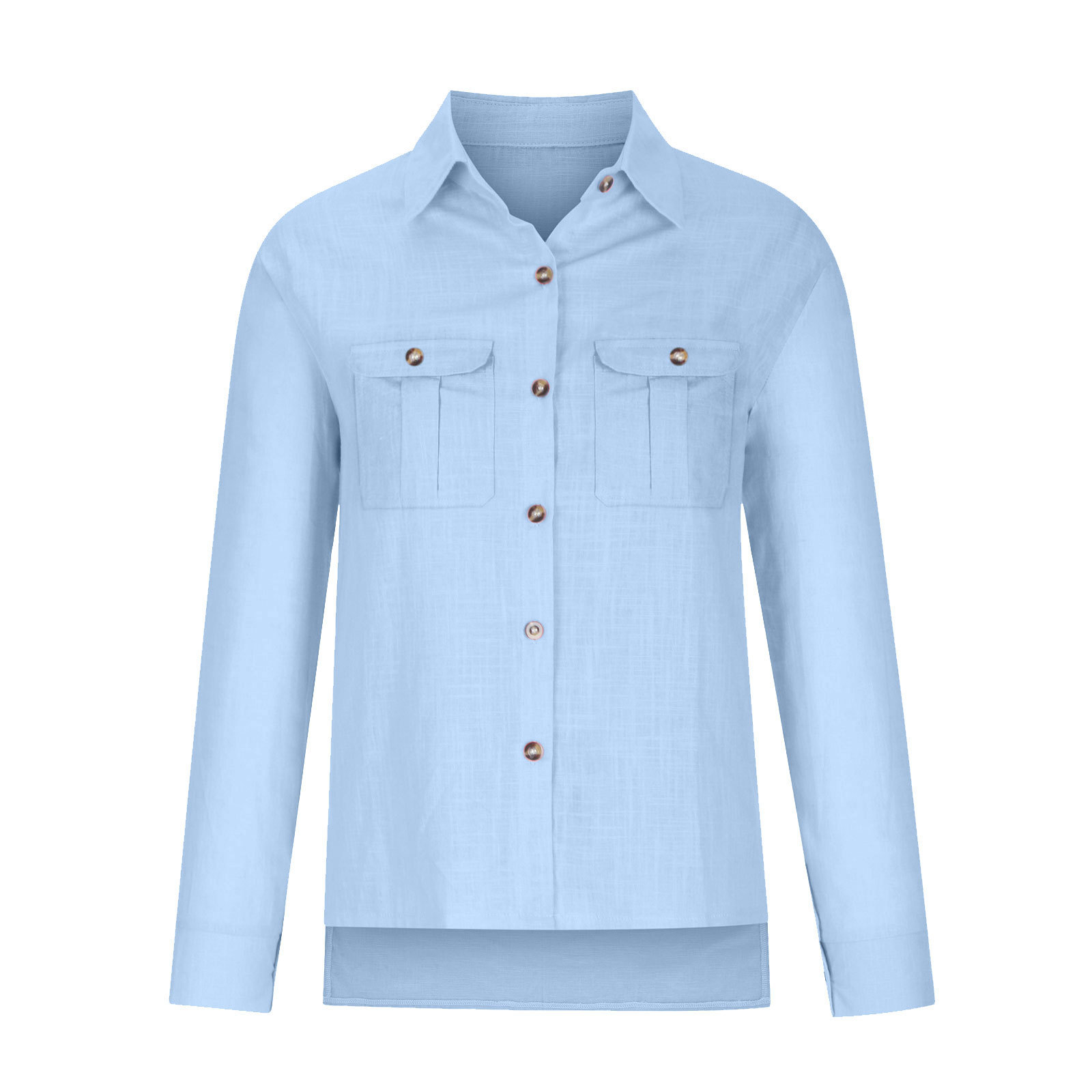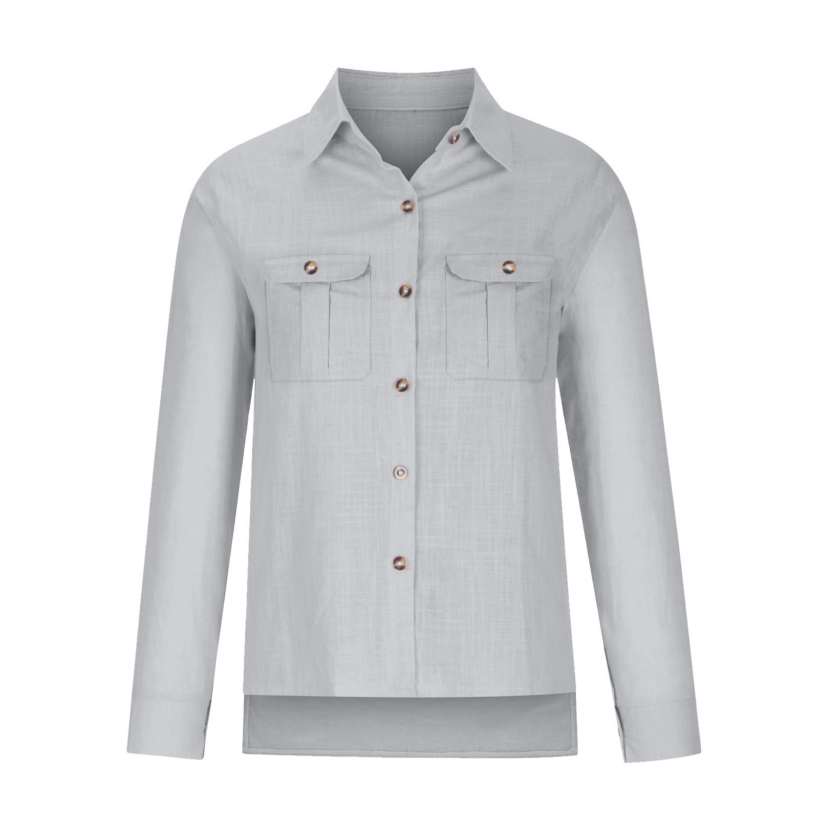 2024 아마존 독립 역 폭발 봄과 가을 캐주얼 더블 포켓 분할 긴 소매 여성용 코튼 셔츠스토어 가기