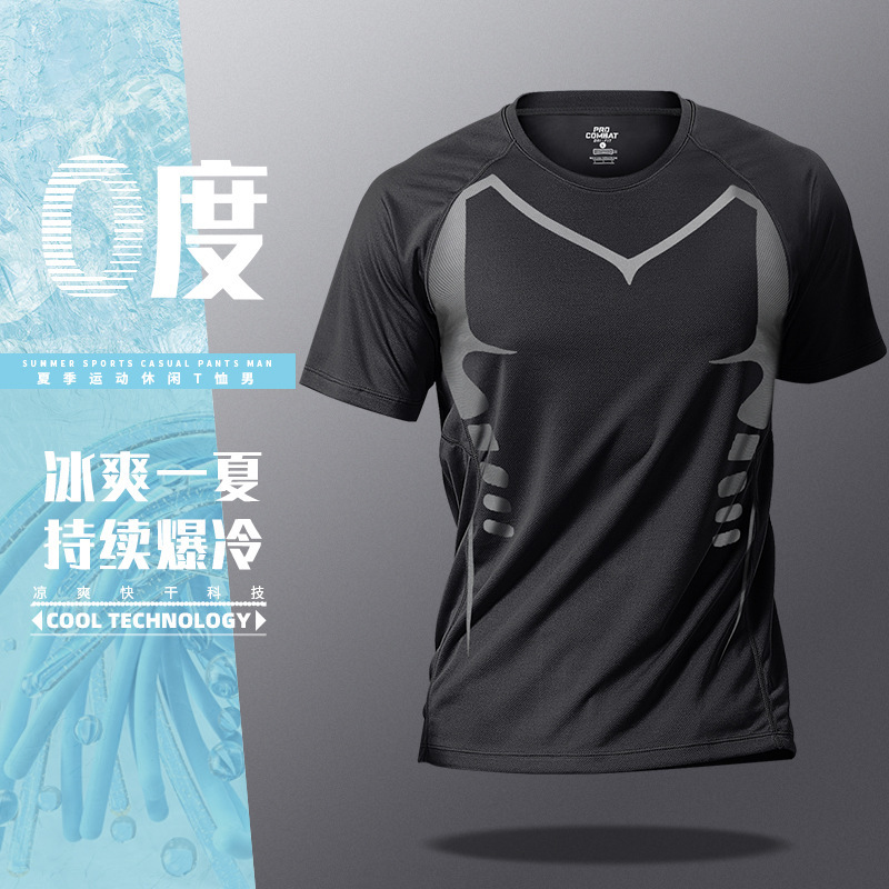 스포츠 티셔츠 남자 아이스 실크 여름 얇은 빠른 건조 반팔 최고 느슨한 피트니스 달리기 여름 농구 훈련 옷스토어 가기