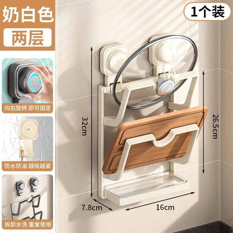 새로운 석션 컵 냄비 커버 랙 벽에 매달려 펀치없는 주방 스토리지 랙 다기능 가정용 스토리지 랙 도마 플레이서스토어 가기