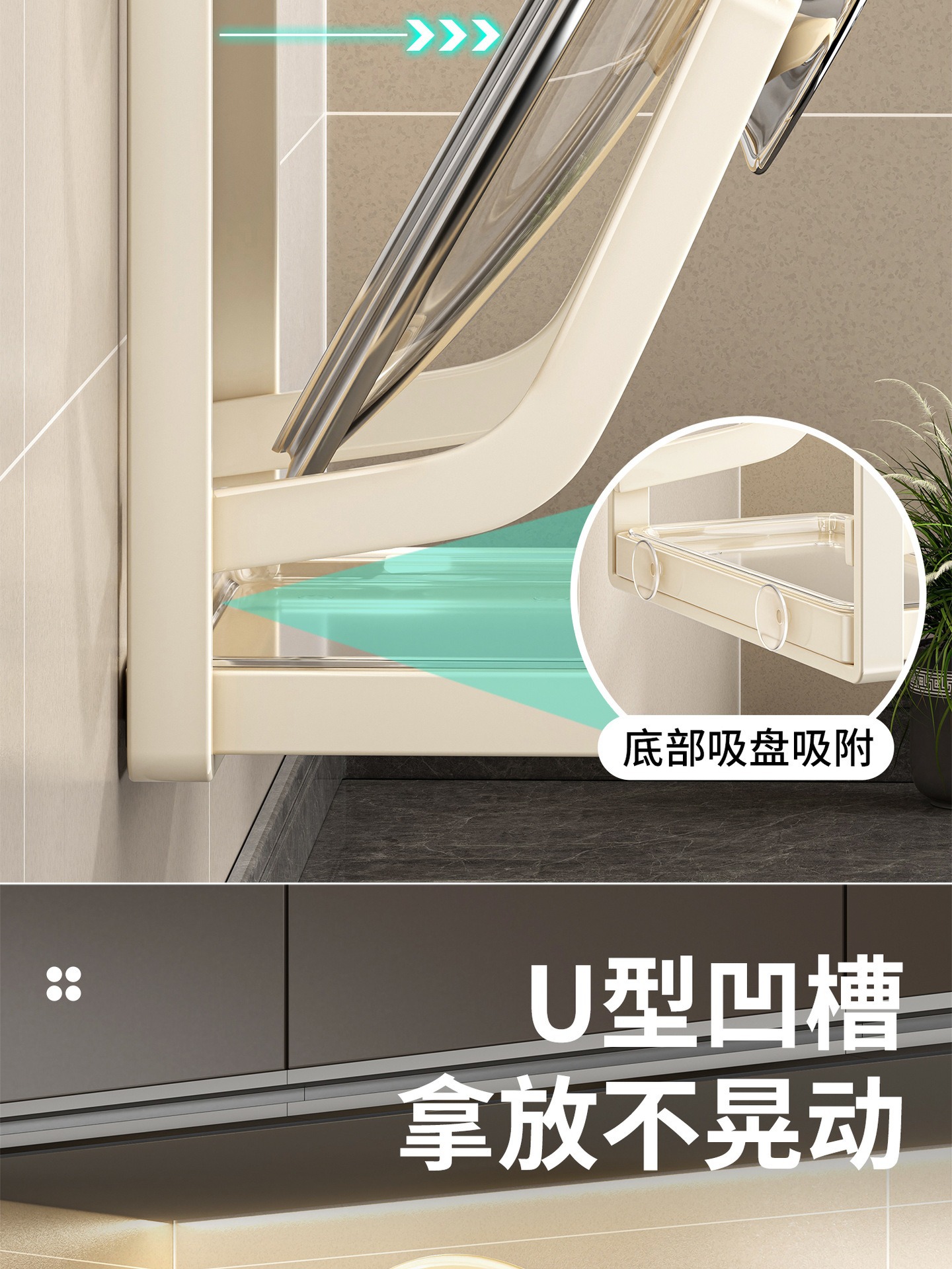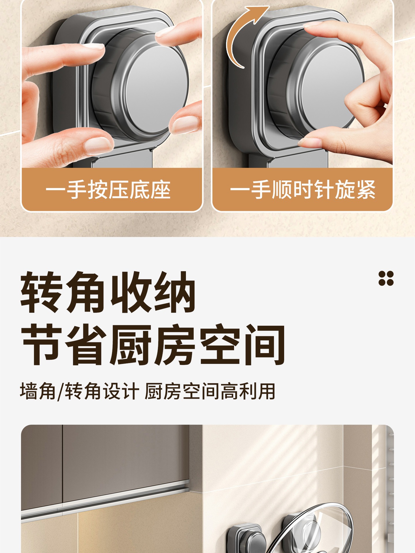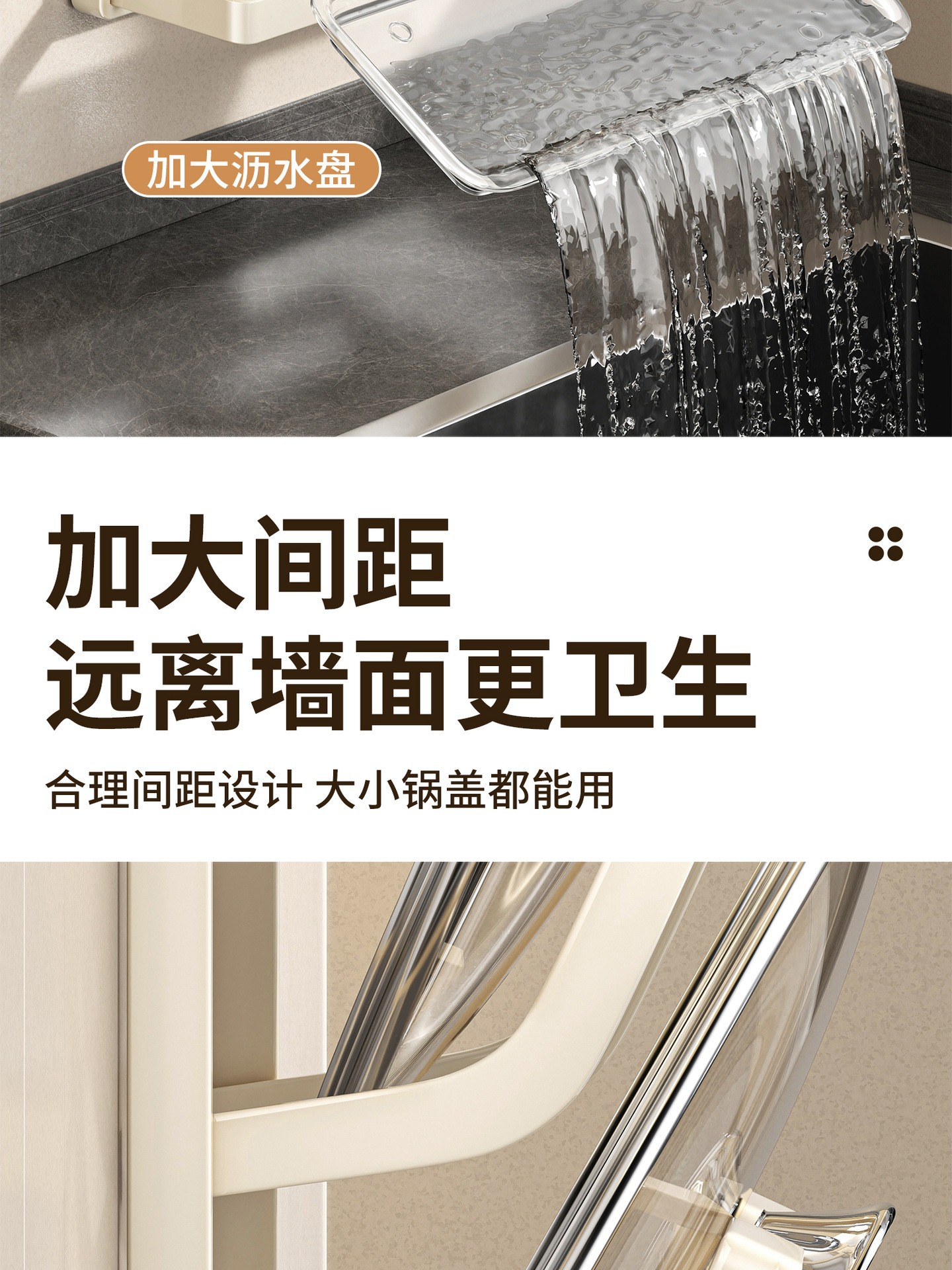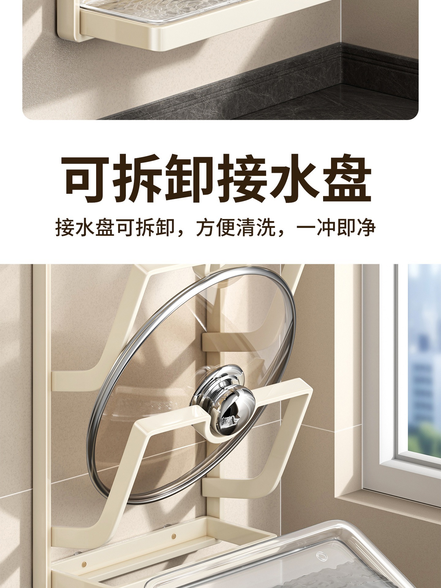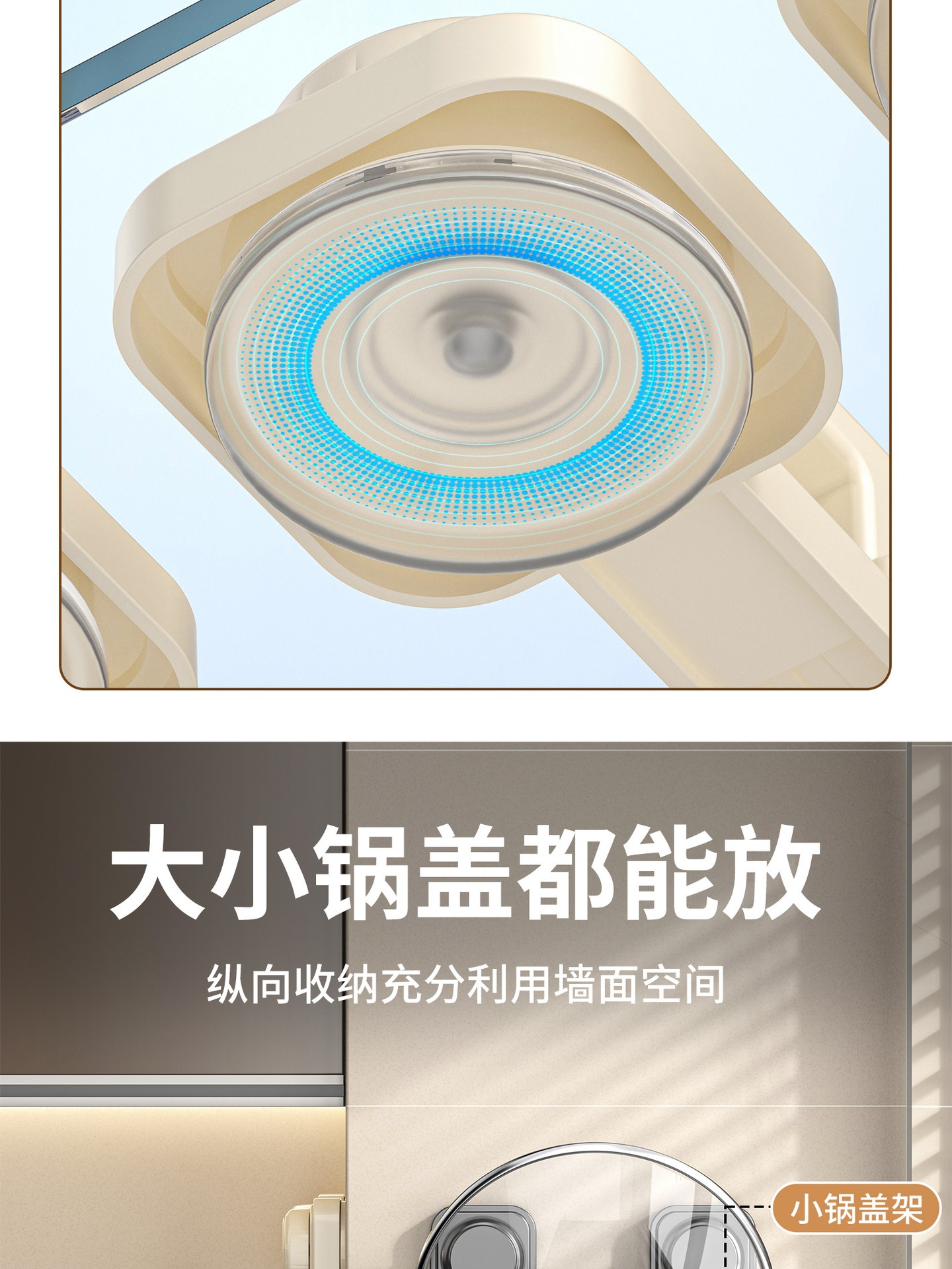 • 사각 원형 흡착컵 냄비 뚜껑 홀더 [더블 레이어/밀크 화이트]