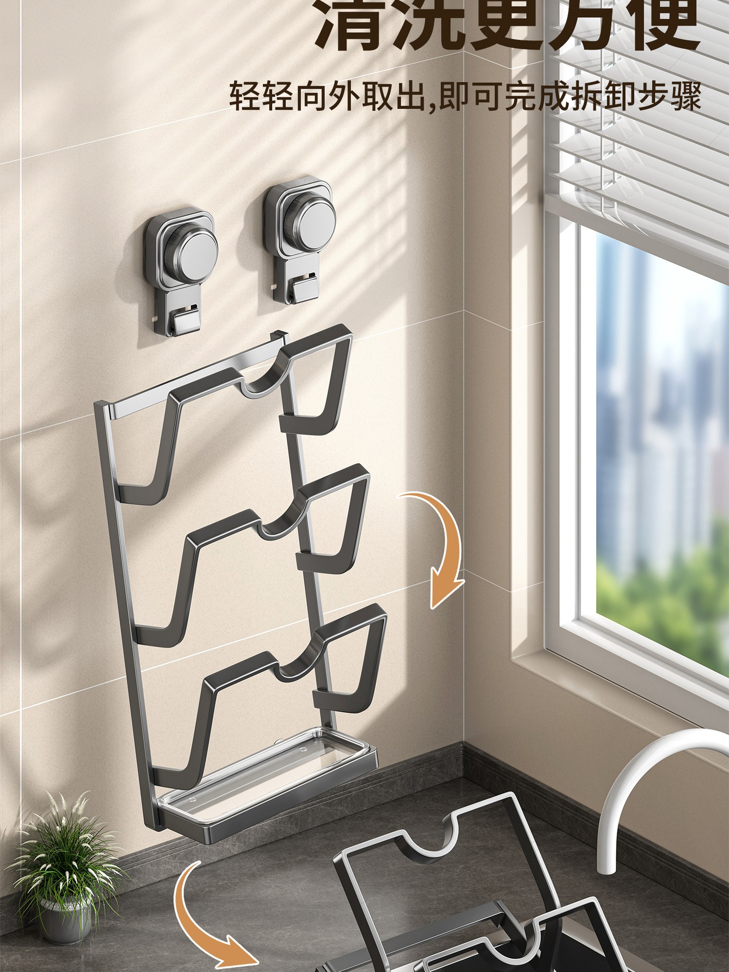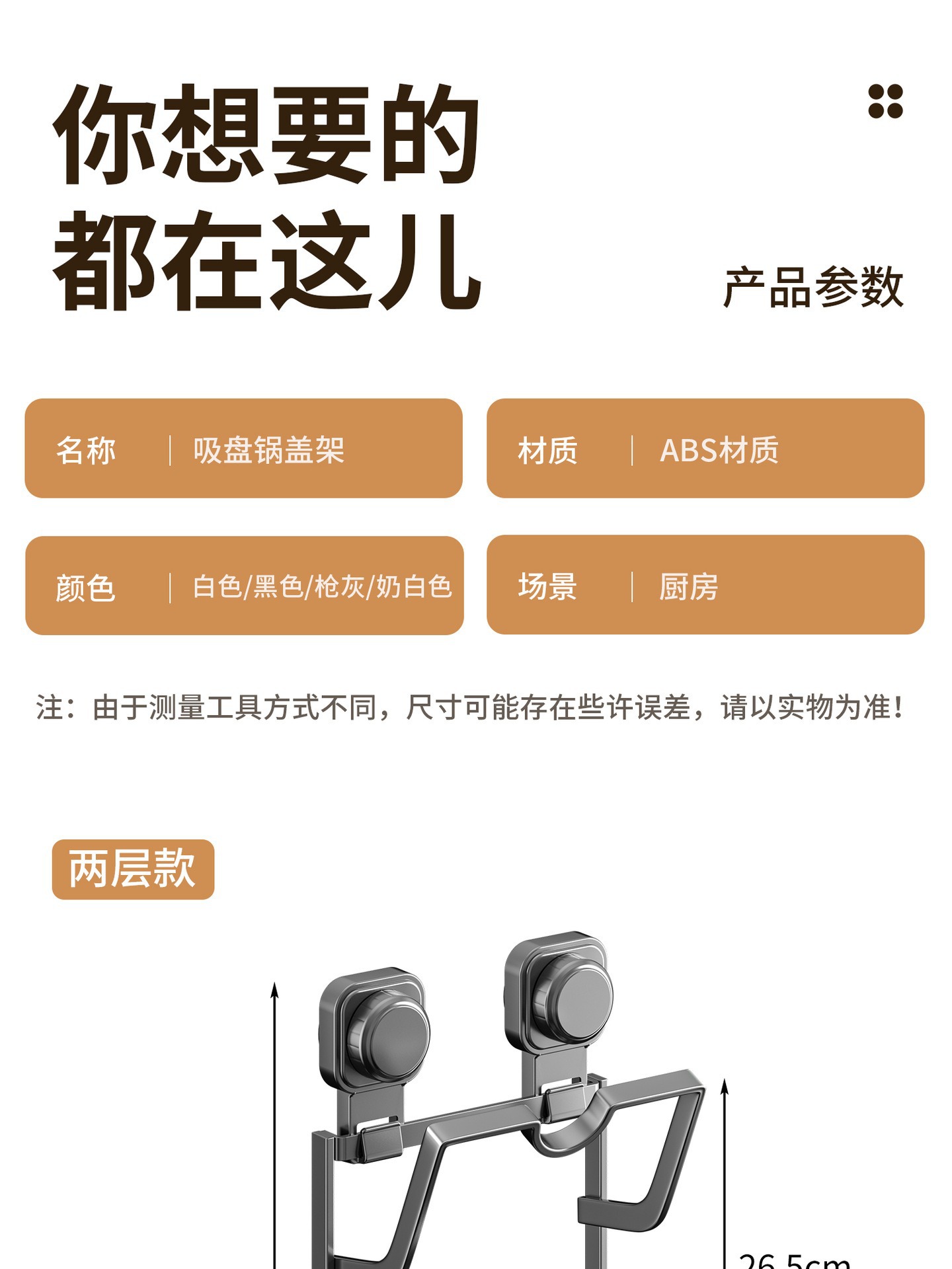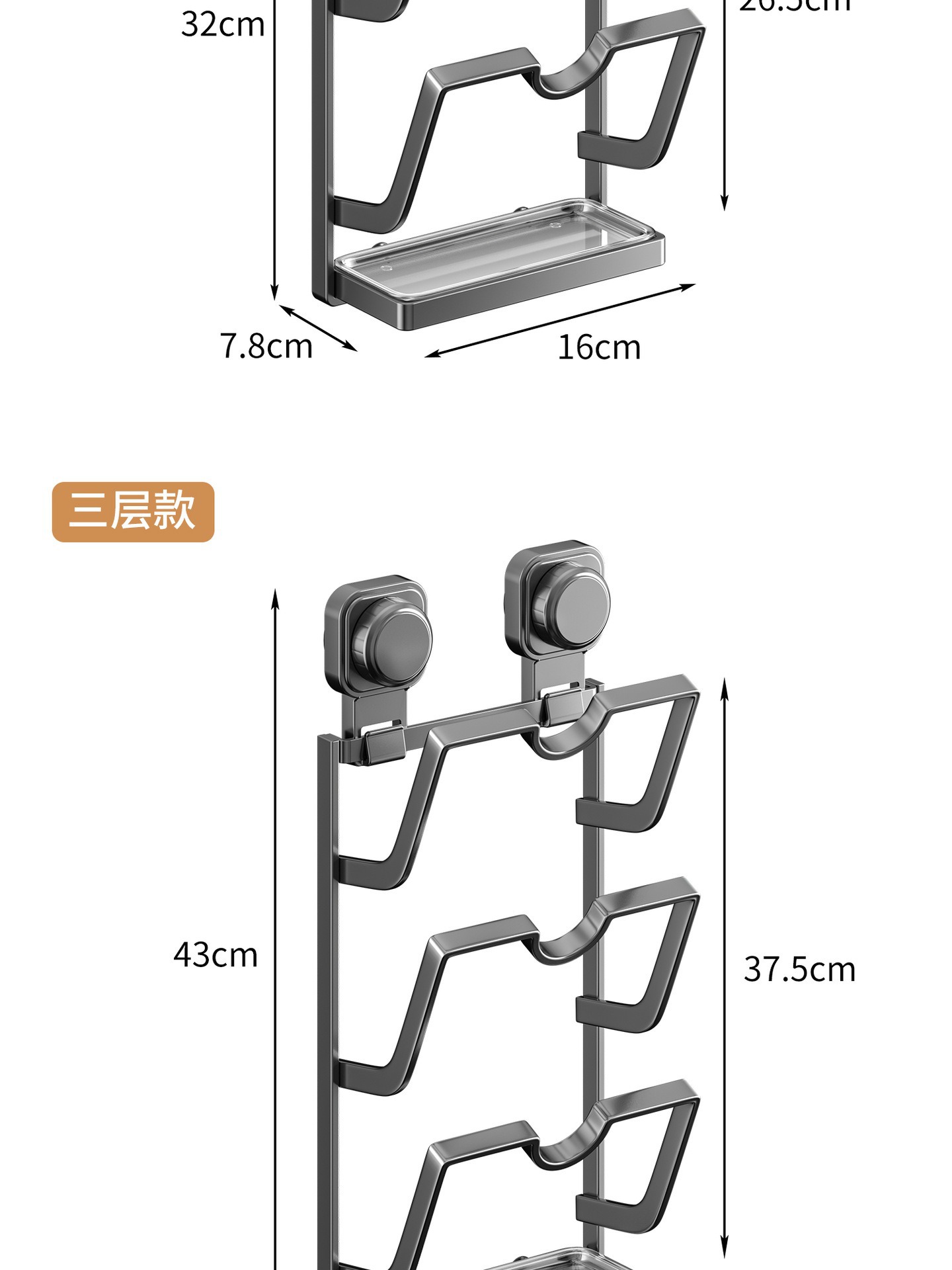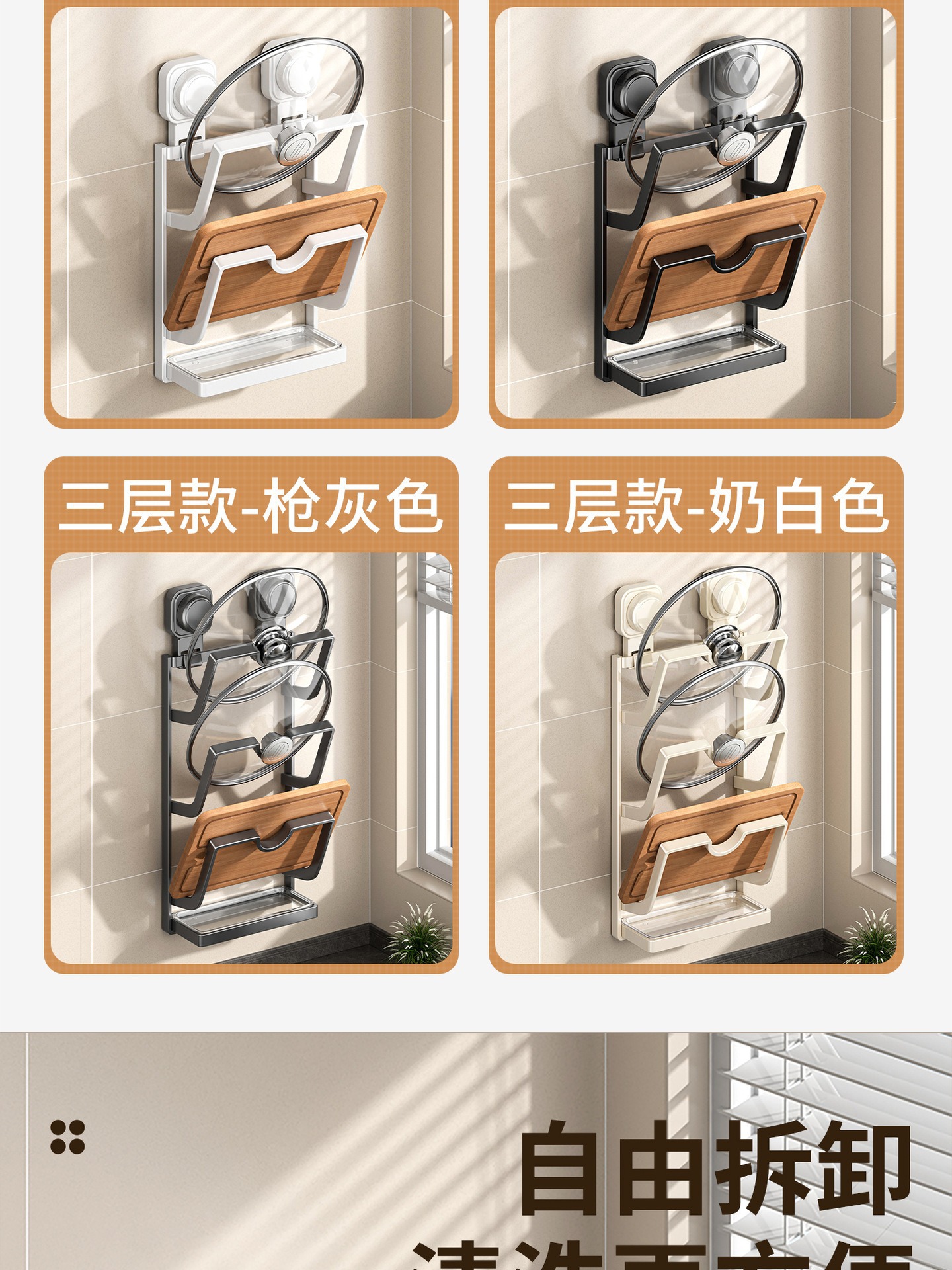 • 사각 원형 흡착컵 냄비 뚜껑 홀더 [3단/건그레이]