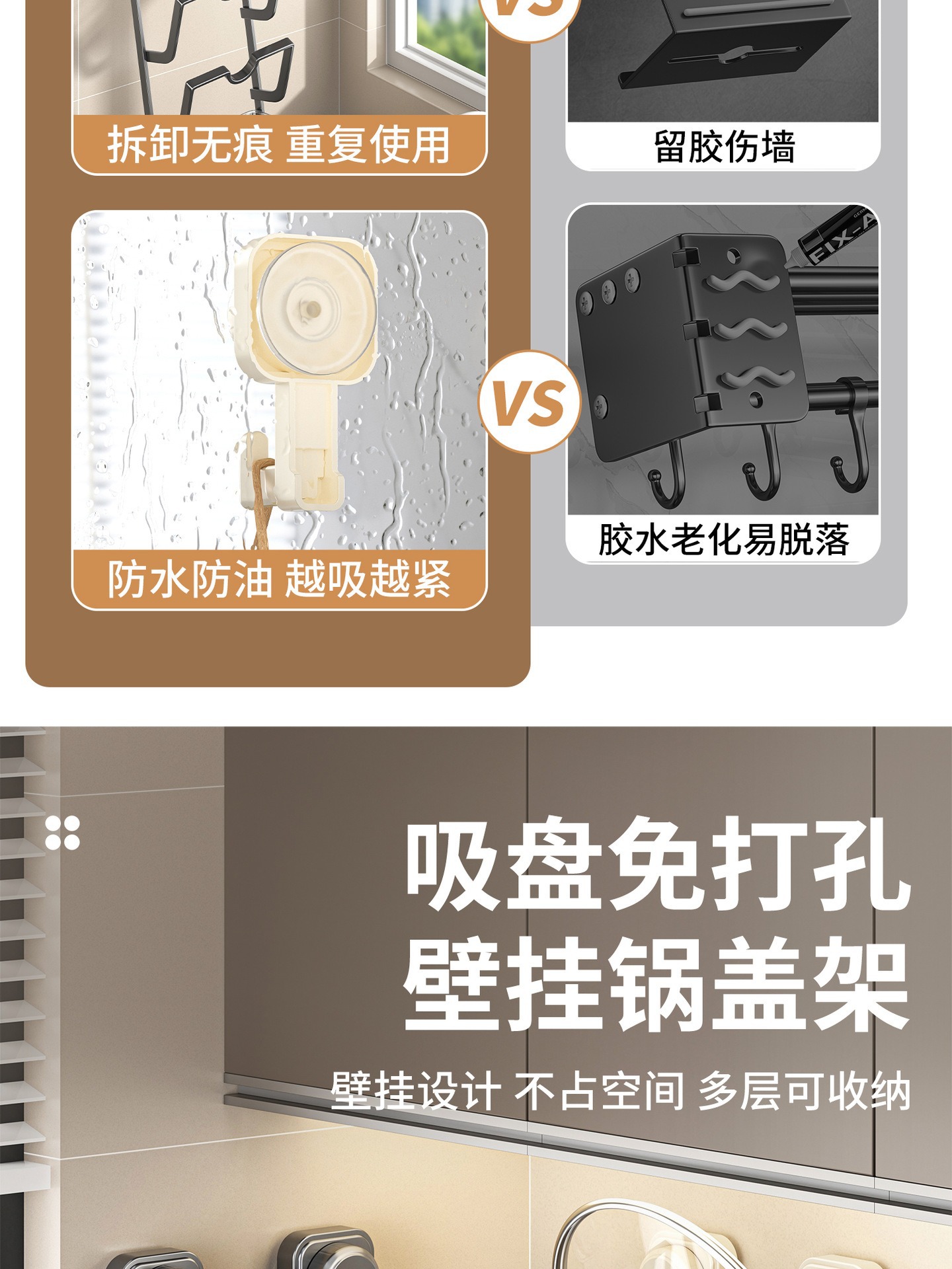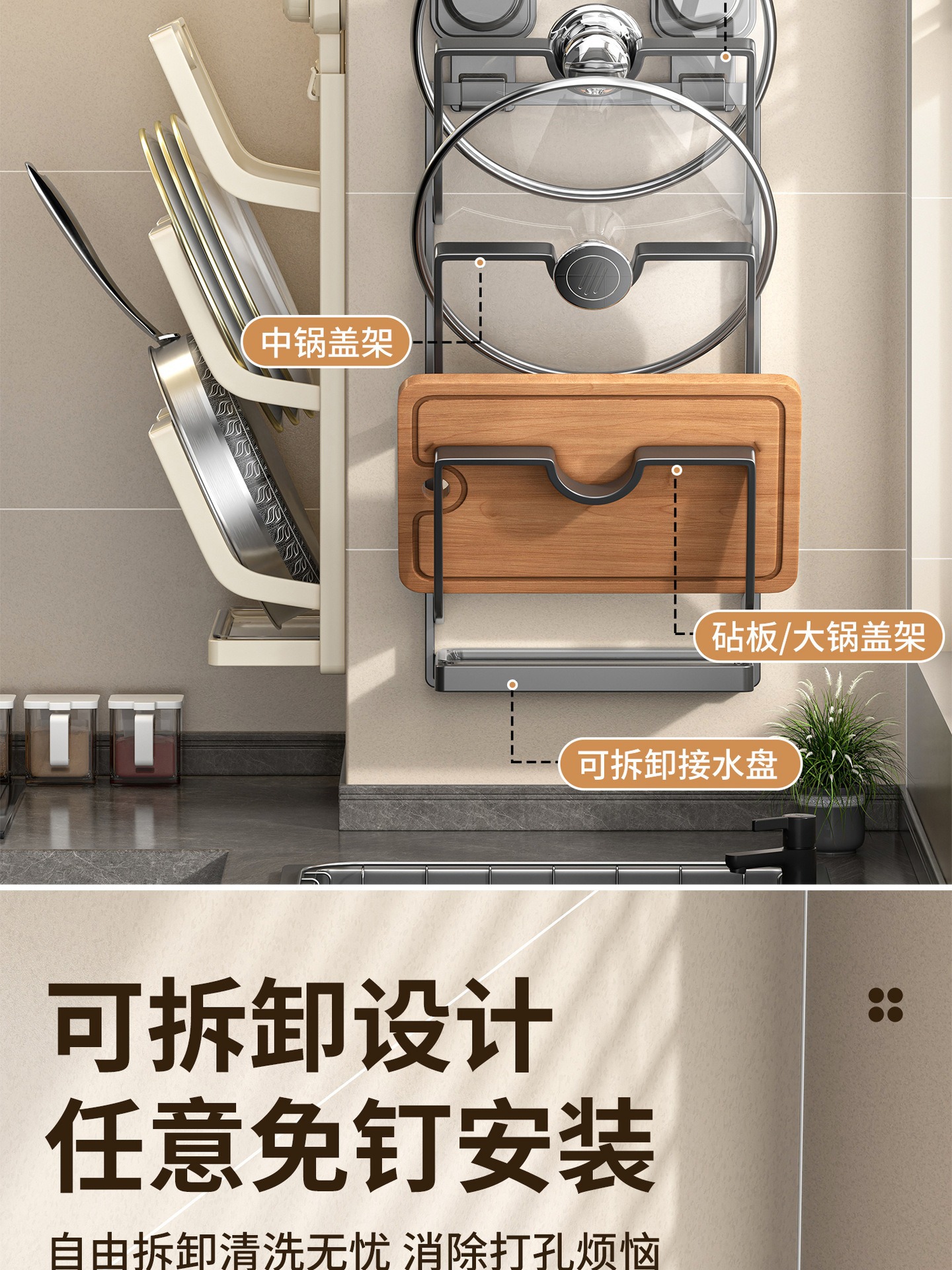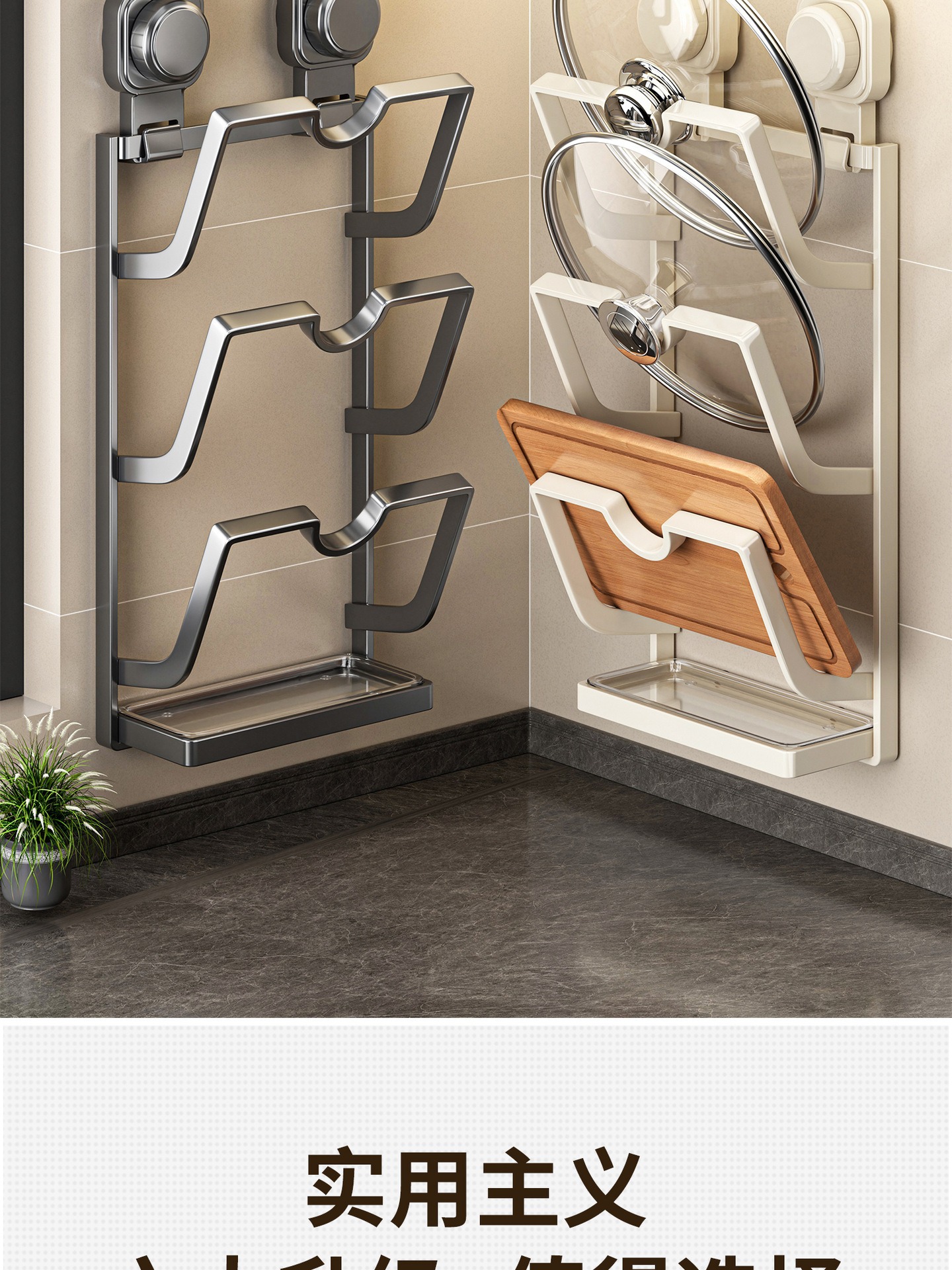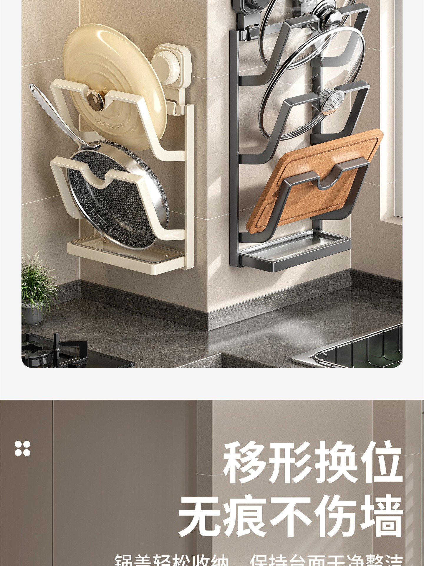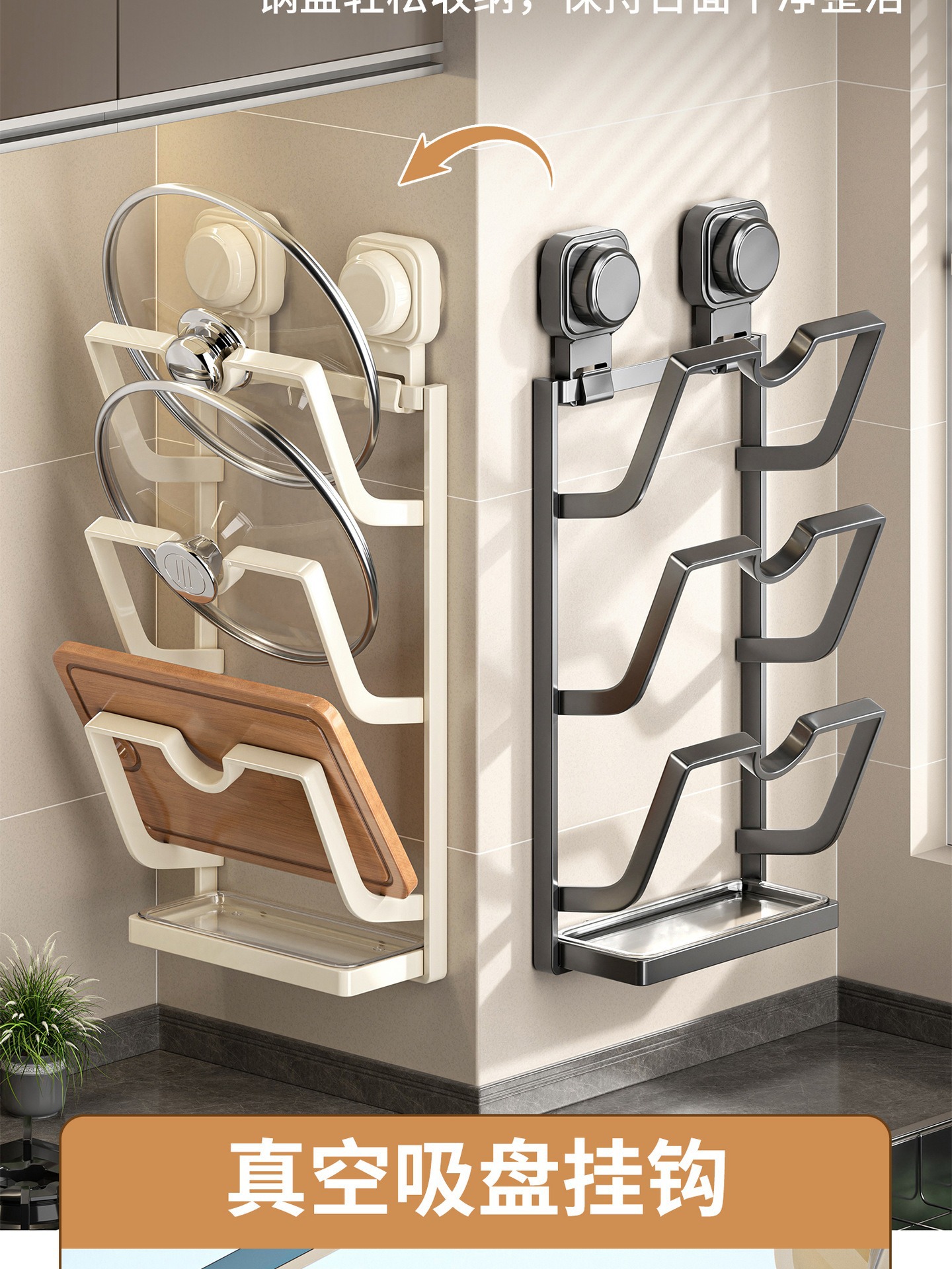 새로운 석션 컵 냄비 커버 랙 벽에 매달려 펀치없는 주방 스토리지 랙 다기능 가정용 스토리지 랙 도마 플레이서