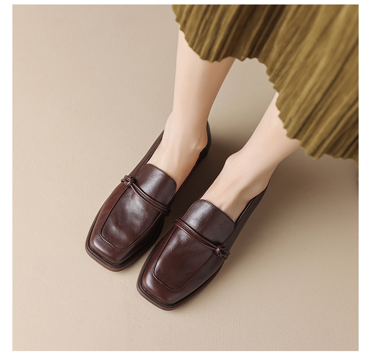 거대한 경량 ~ 스퀘어 헤드 로퍼 여성 레트로 영국 작은 가죽 신발 새로운 미드 힐 싱글 레이어 신발스토어 가기
