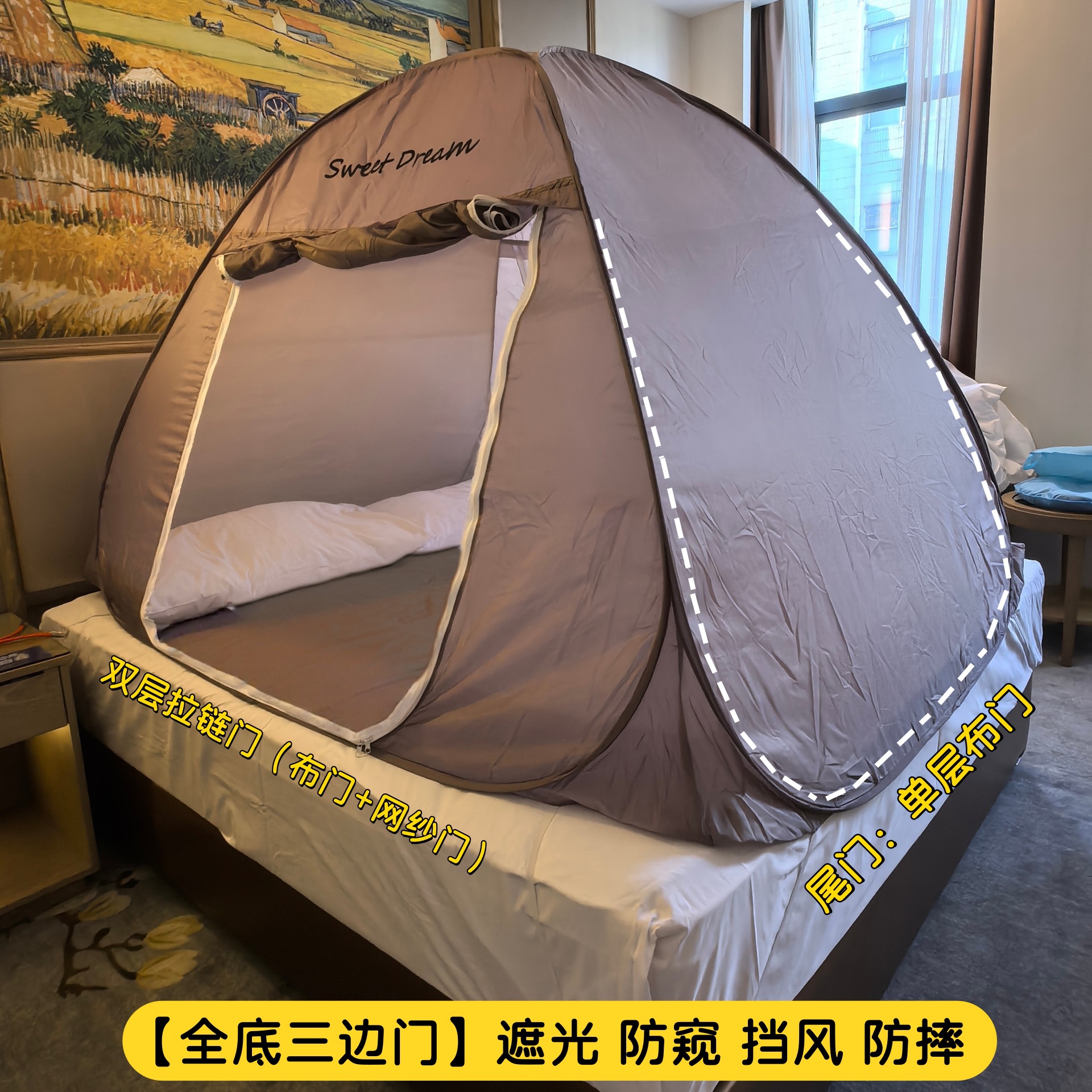 방풍 따뜻한 모기장 설치 무료 텐트 공원 야외 캠핑 쉐이딩 가구 더블 1.5/1.8m 유르트스토어 가기