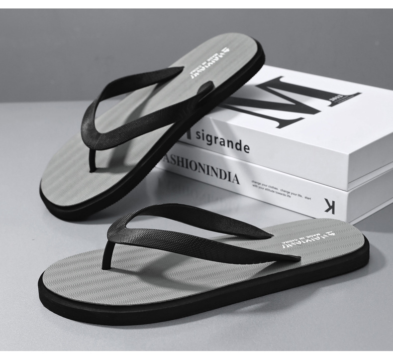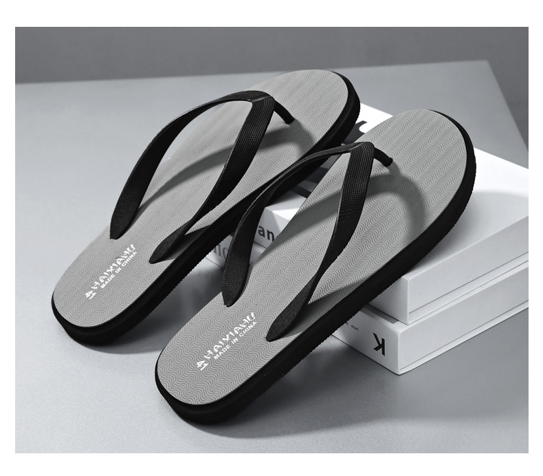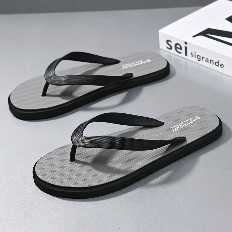 [재고] 남자 슬리퍼 여름 미끄럼 방지 야외 샌들 클립-한국 캐주얼 고무 비치 신발 트렌드