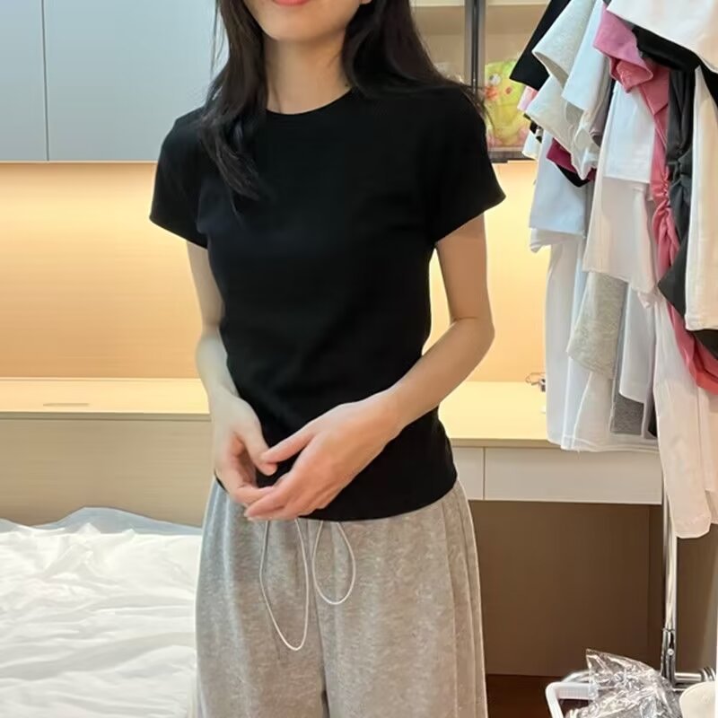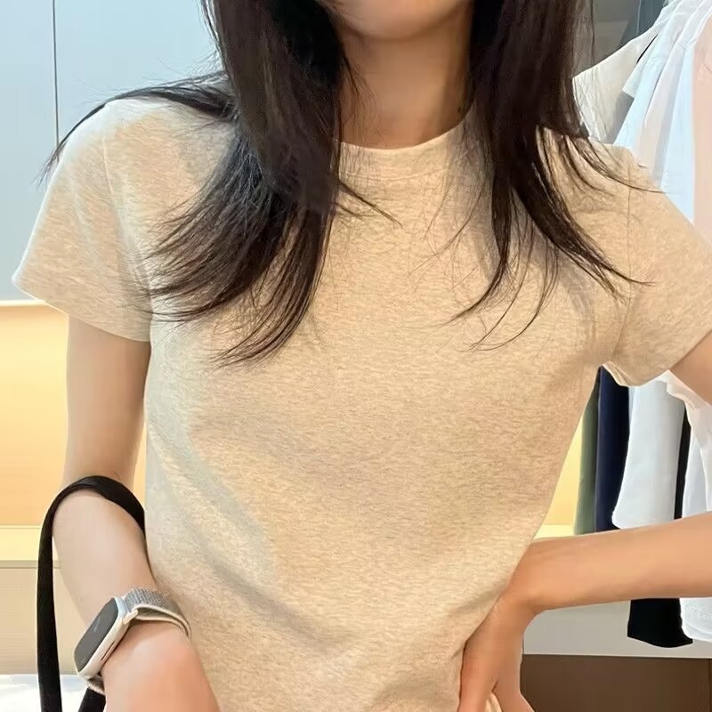 여름 반팔 트렌디 브랜드 여성 티셔츠 미국 2025 솔리드 컬러 트렌디 반소매 느슨한 홍콩 스타일 화이트 베이스 셔츠 커플스토어 가기