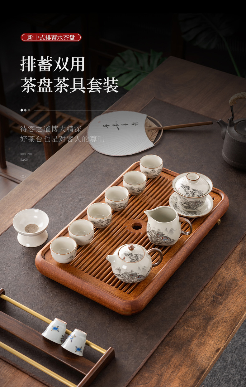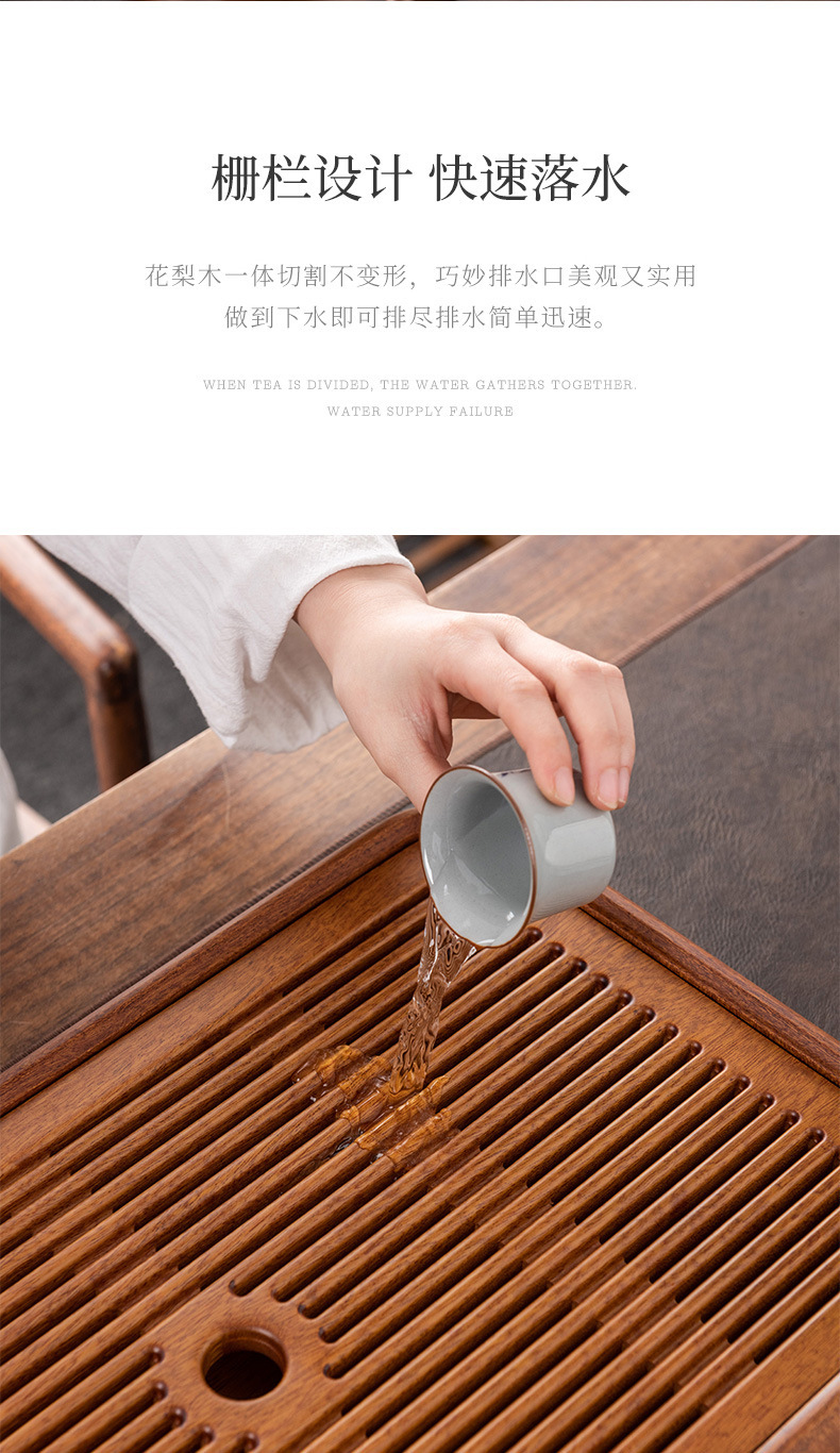 가정용 차 쟁반 2024 새로운 작은 고급 솔리드 우드 로즈 우드 드라이 양조 차 테이블 트레이 거실 물 저장 차 바다