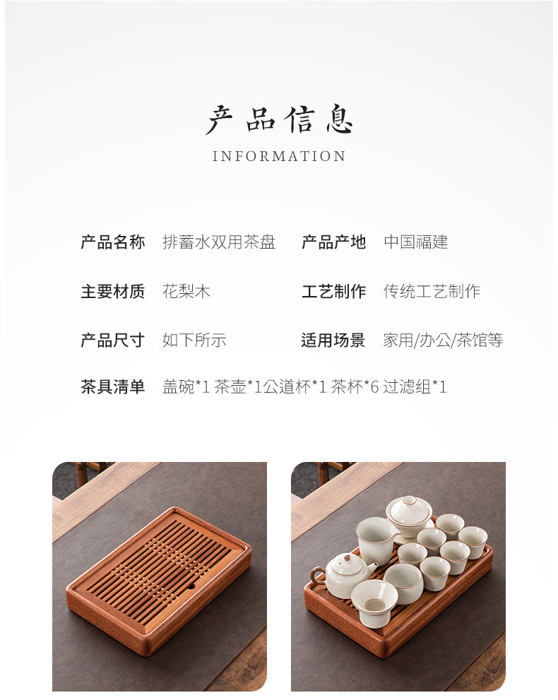가정용 차 쟁반 2024 새로운 작은 고급 솔리드 우드 로즈 우드 드라이 양조 차 테이블 트레이 거실 물 저장 차 바다스토어 가기