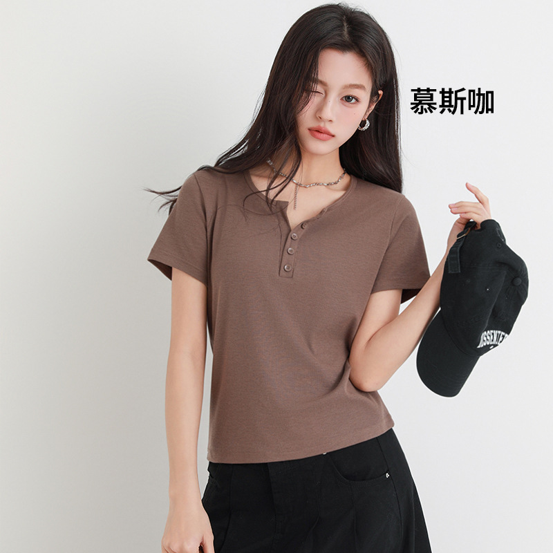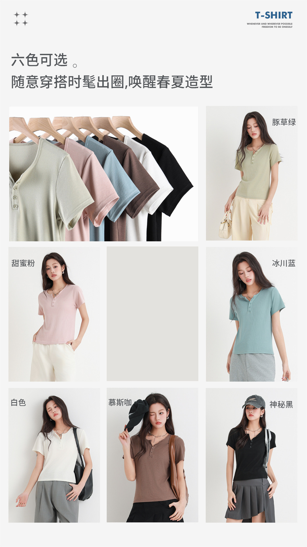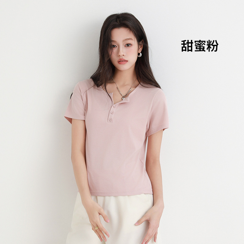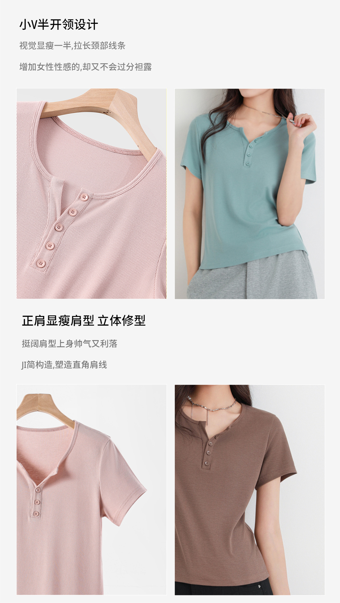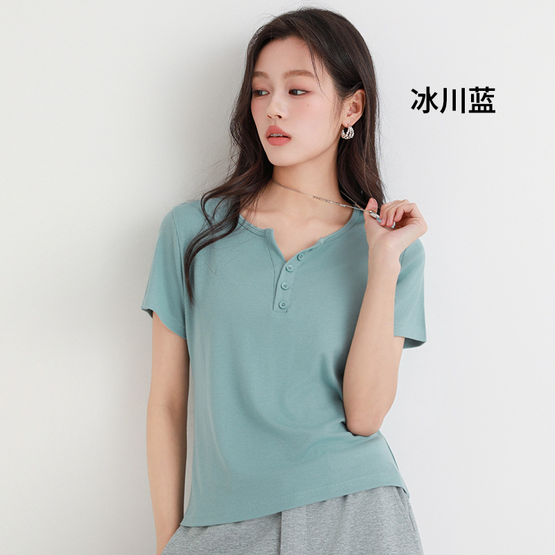 여름 텐셀 패브릭 반팔 여성용 티셔츠 조커 작은 V 넥 탑 여성용 캐주얼 슬림 핏 슬리밍 텐셀베이스 셔츠스토어 가기