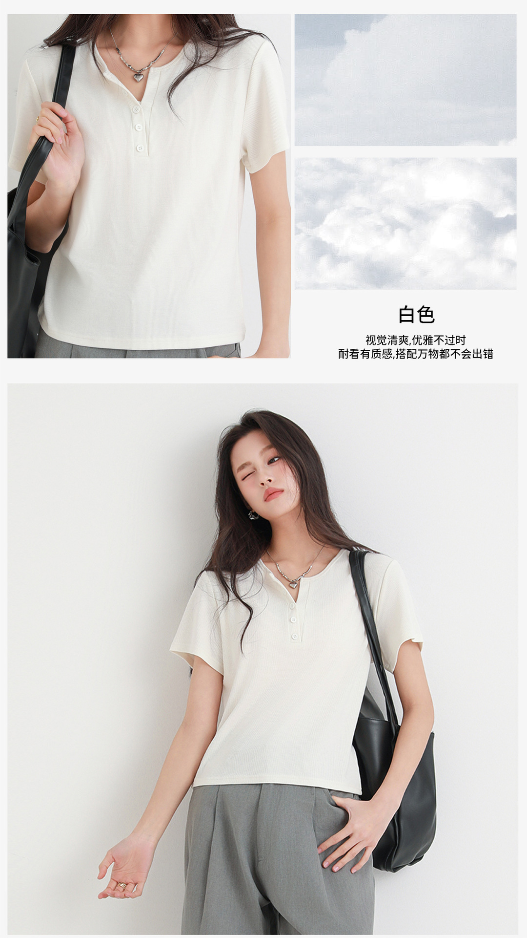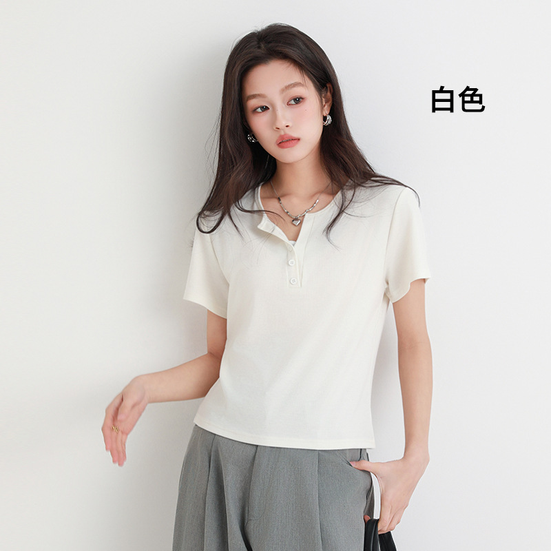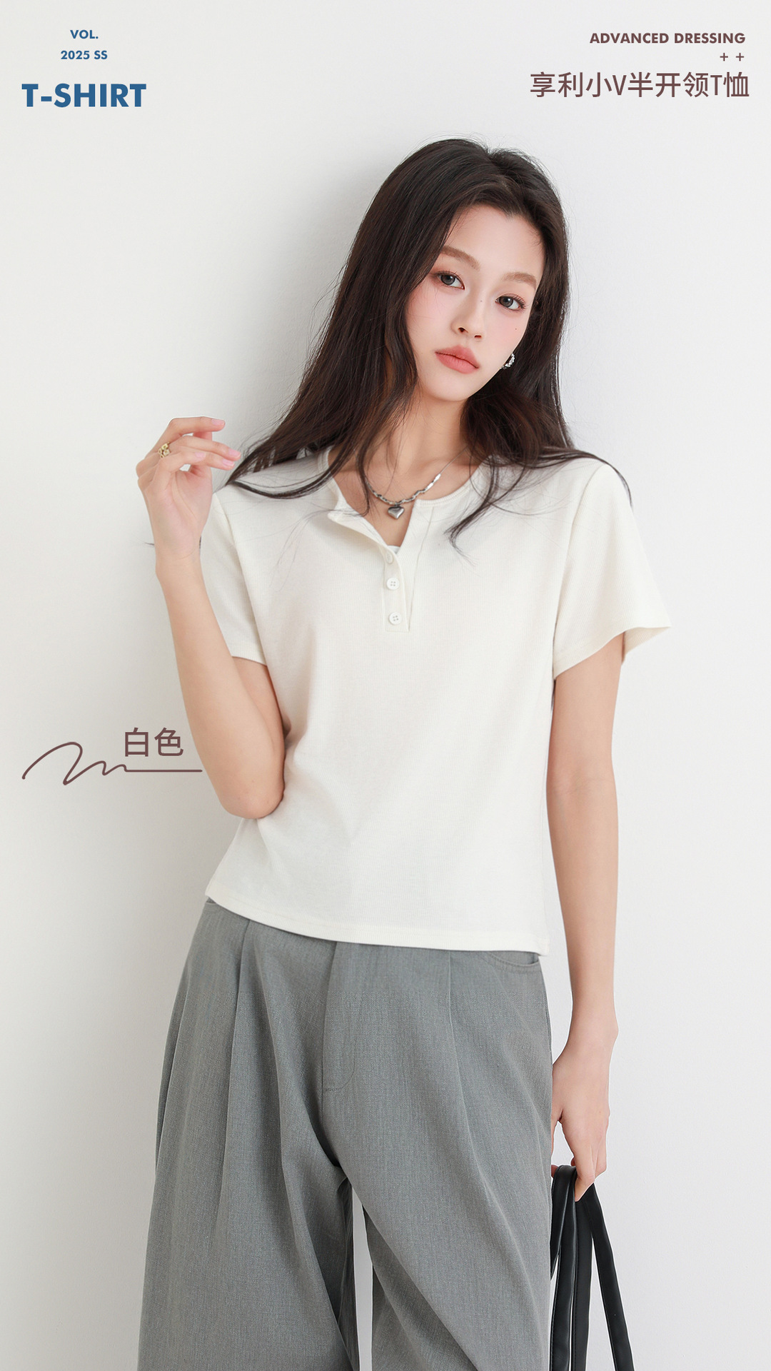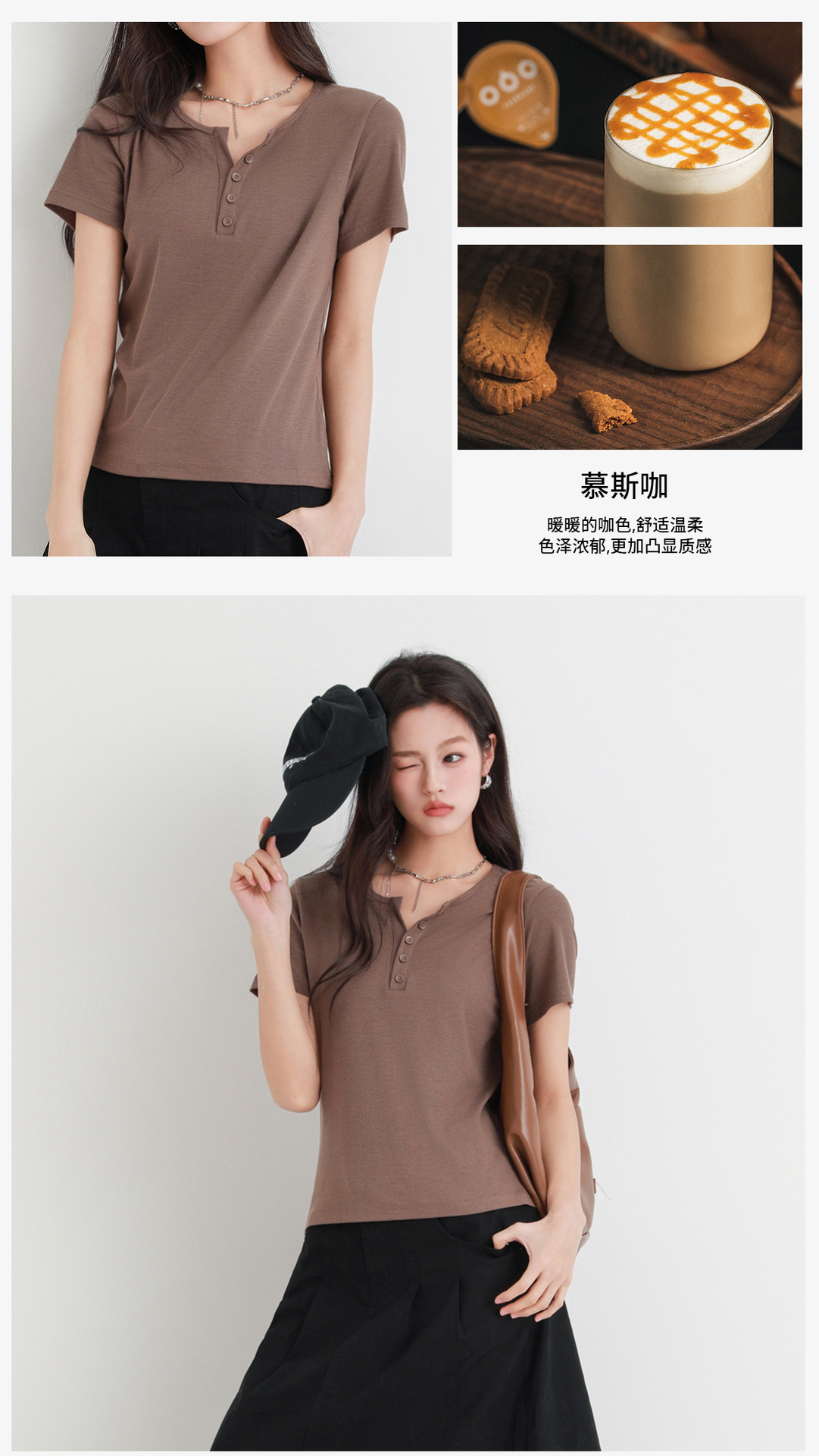 여름 텐셀 패브릭 반팔 여성용 티셔츠 조커 작은 V 넥 탑 여성용 캐주얼 슬림 핏 슬리밍 텐셀베이스 셔츠스토어 가기