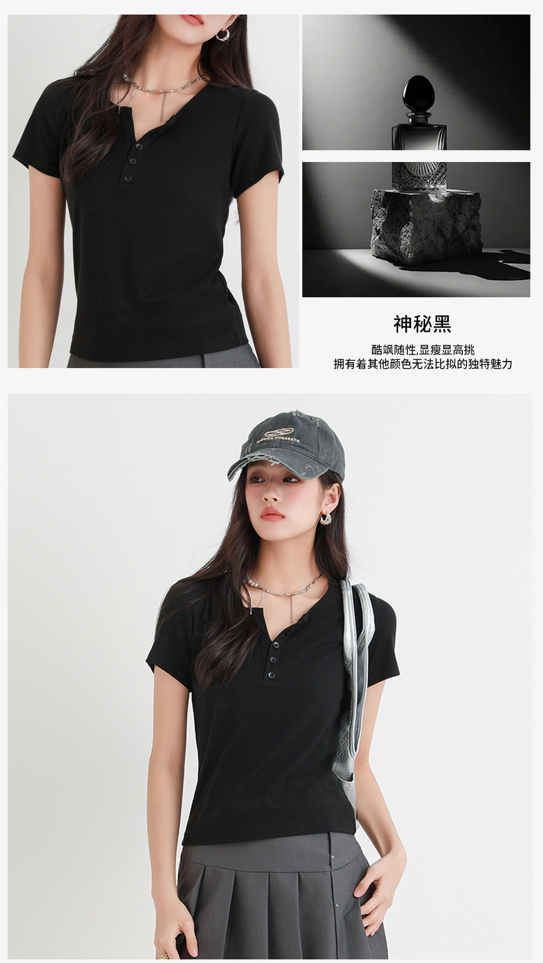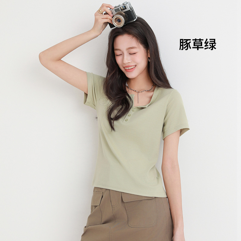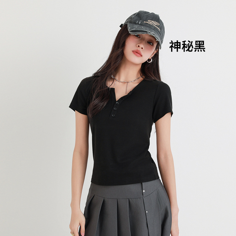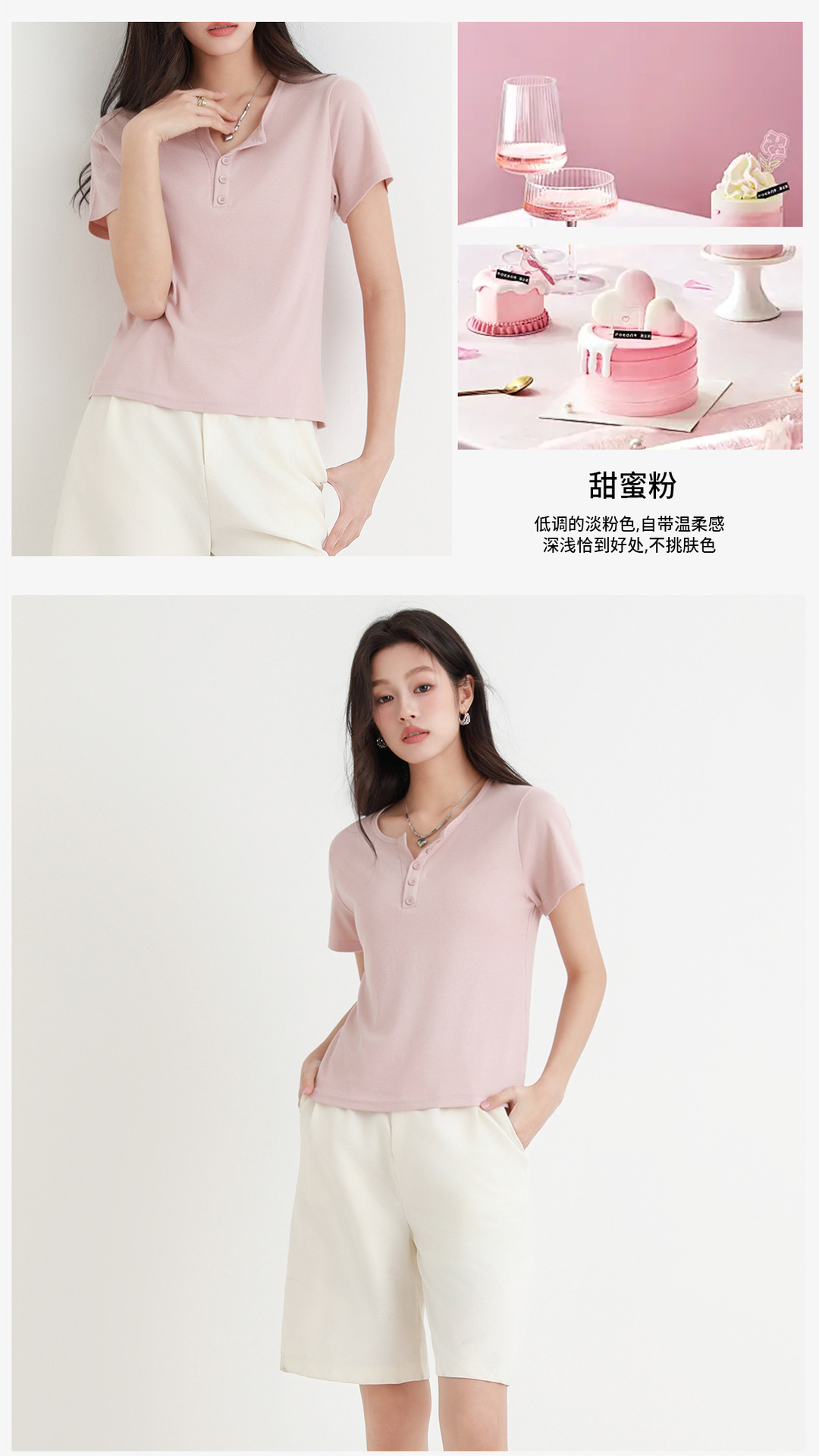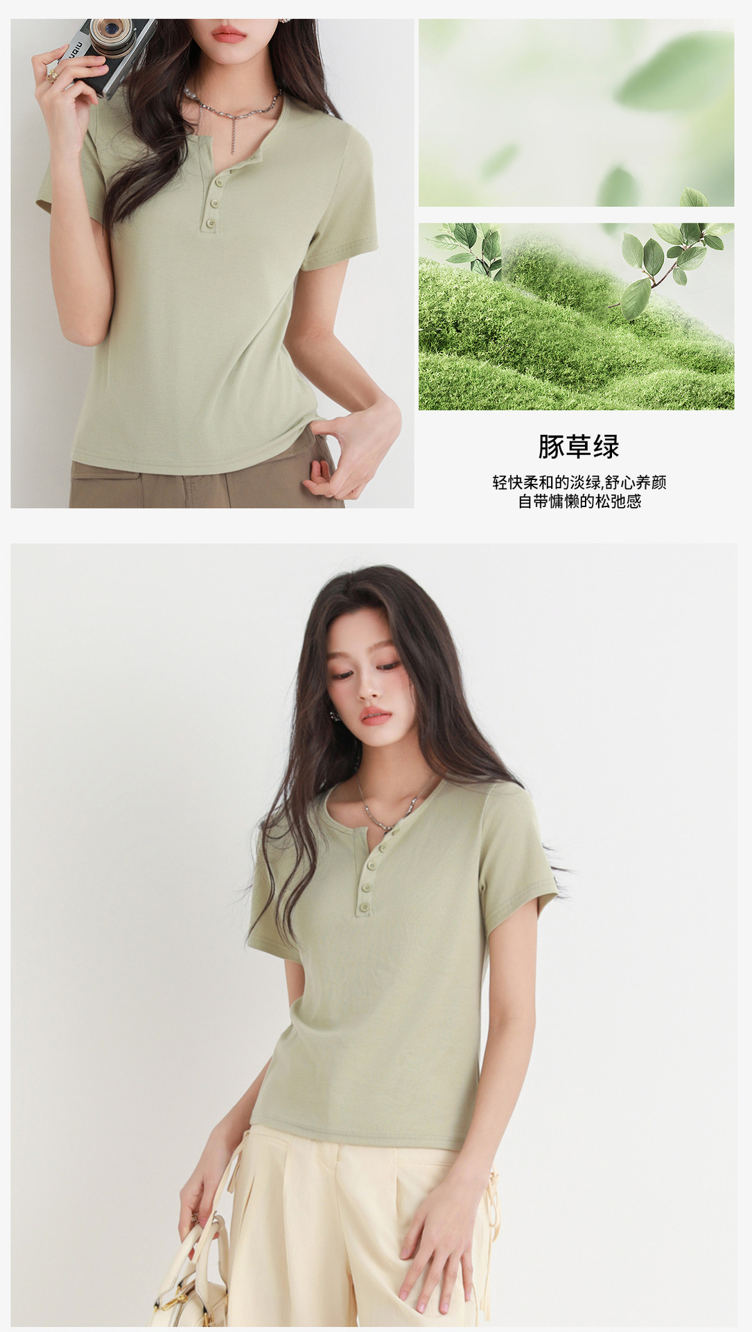 여름 텐셀 패브릭 반팔 여성용 티셔츠 조커 작은 V 넥 탑 여성용 캐주얼 슬림 핏 슬리밍 텐셀베이스 셔츠스토어 가기