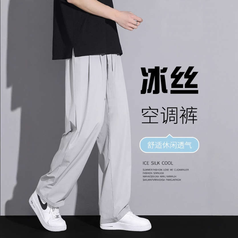 얇은 아이스 실크 바지 남자의 봄과 여름 남자의 유행 빠른 건조 캐주얼 바지 플러스 사이즈 스포츠 느슨한 스트레이트 바지스토어 가기