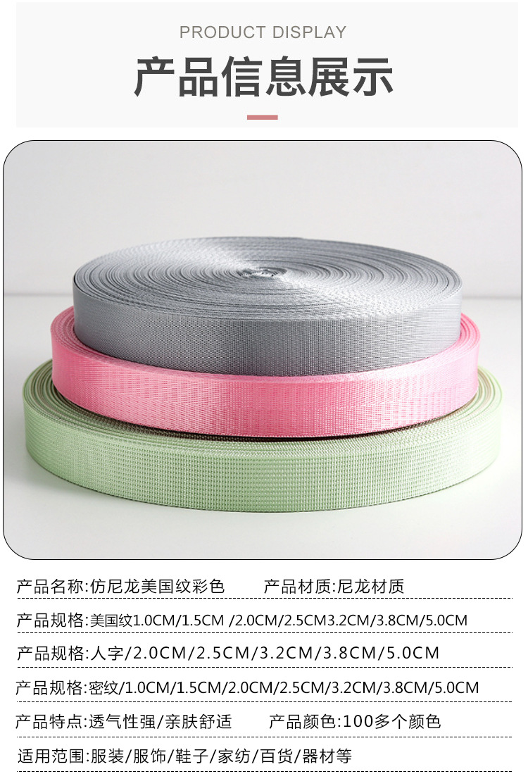 재고 모조 나일론 테두리 미국 웨빙 컬러 헤링톤 일반 웨빙 100 멀티 컬러 탄성 밴드 섬유 액세서리스토어 가기
