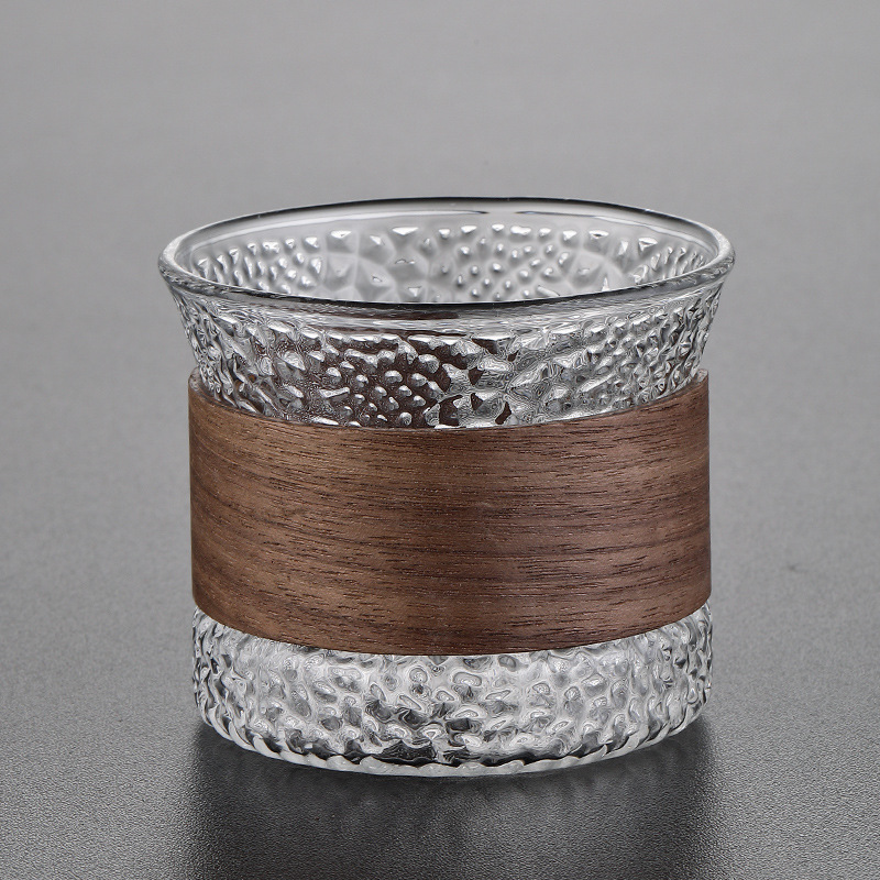 높은 붕규산 유리 차 시음 컵 나무 통 열 절연 작은 컵 가구 마스터 작은 차 컵 사무실 해머 패턴 차 시음 컵